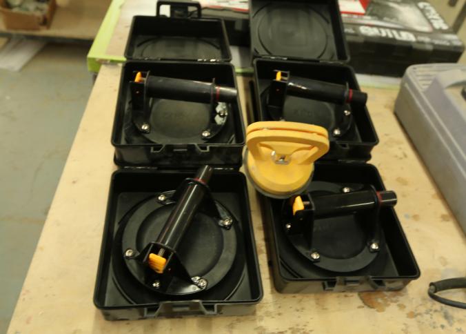 Four Damo 8" vacuum suction cup glass lifters. Pickup can be completed on both days.