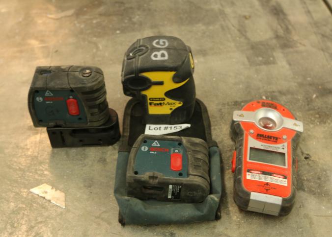 Laser levels including Black & Decker Bullseye model BDL 190S, 2X Bosch GPL3, and Stanley FatMax. Pickup can be completed on both days.