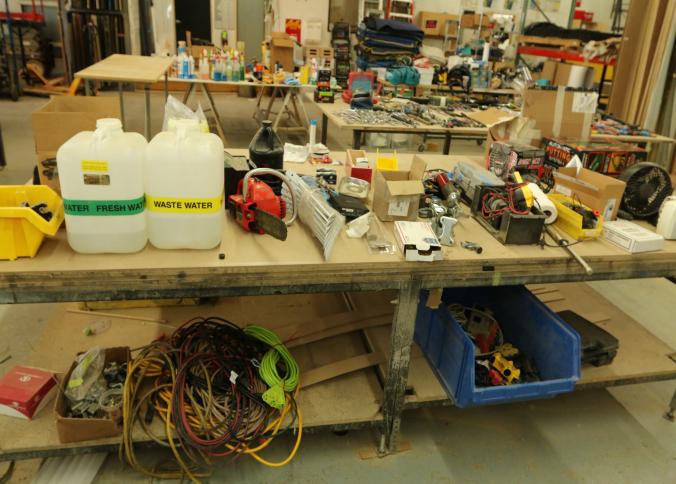 Various tools, equipment, and supplies including extension cords, water jugs, LT200 super winch, Craftsman chainsaw, Lucas grease gun, two Club Champ Putting systems, etc. Buyer must take all. Excludes table. Pickup must be completed on Thursday, September 8 by 3PM.