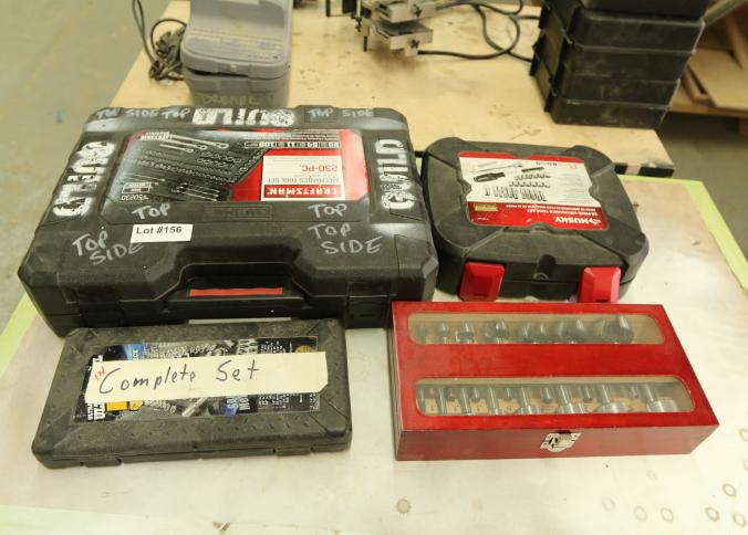 Complete wood bore set. Craftsman 230pc socket set incomplete, Husky 38piece socket set incomplete, Ultra-tough Ultra steel 54 piece set incomplete, Pickup can be completed on both days.