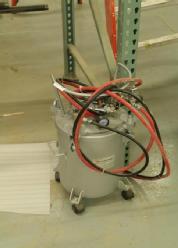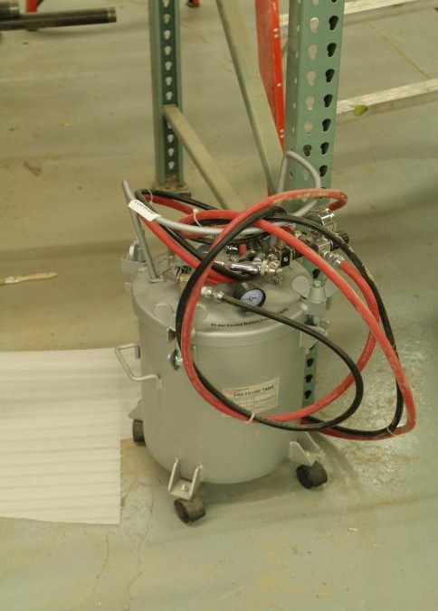 Portable air container with pressure gauges, hoses and spray gun approx 28" tall overall. Pickup can be completed on both days.