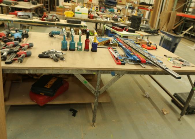 Four large work bench tables as well as sawhorse/plywood tables. Excludes contents and other lots. Pickup must be completed by Friday, September 9 by 3PM.