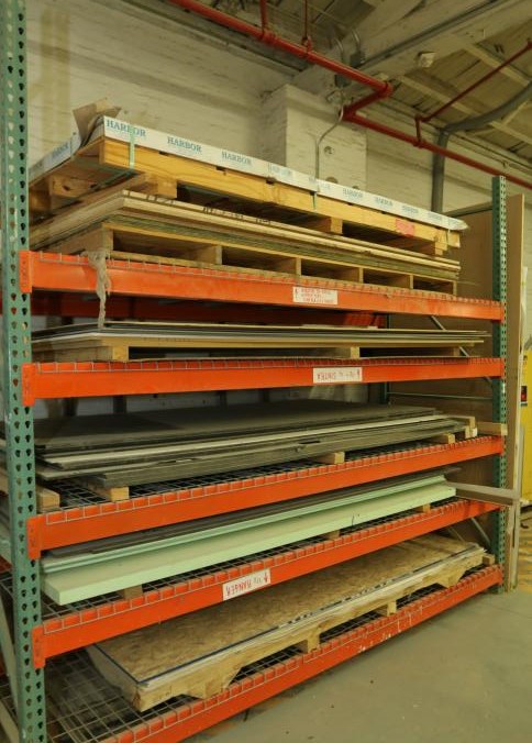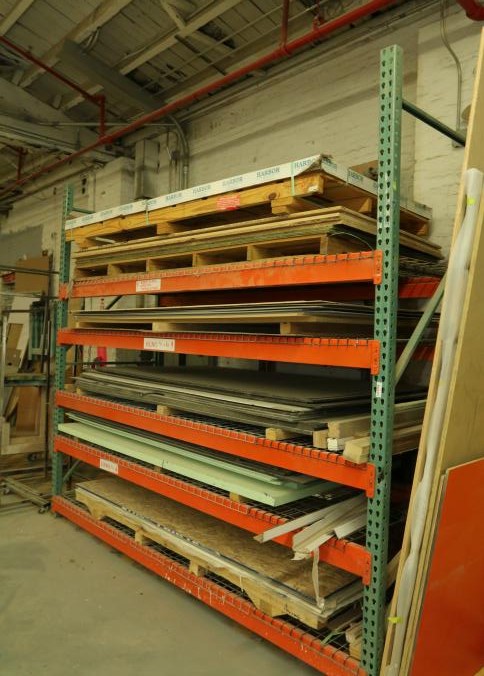 MDF board, plywood, brass sheet metal, steel stock, scrap, OSB, PVC foam board, etc. Buyer must take all. Excludes racking and other lots. Pickup must be completed on Thursday, September 8 by 3PM.