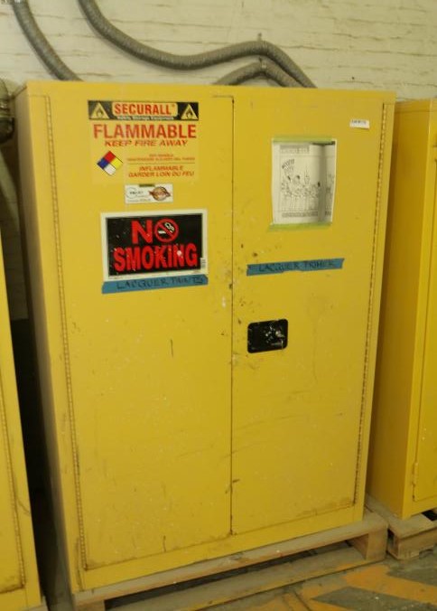 Securall safety storage cabinet model A160 having a 90 gallon capacity, 43" x 31" x 65" tall. Also includes contents. Buyer must take all. Pickup can be completed on both days.