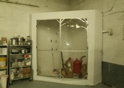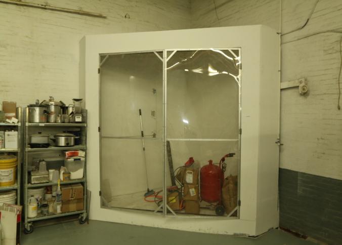 Sandblasting booth with equipment and supplies including Central Pneumatic blast gun with gravity feed, and blast media, 12' x 6.5' x 10' tall. Buyer must take all. Door compartment built into the back of the unit for access to the building wiring which is not included in this lot. The buyer is responsible for the proper and safe removal including bringing all the proper tools, equipment and help. Pickup can be completed on both days.