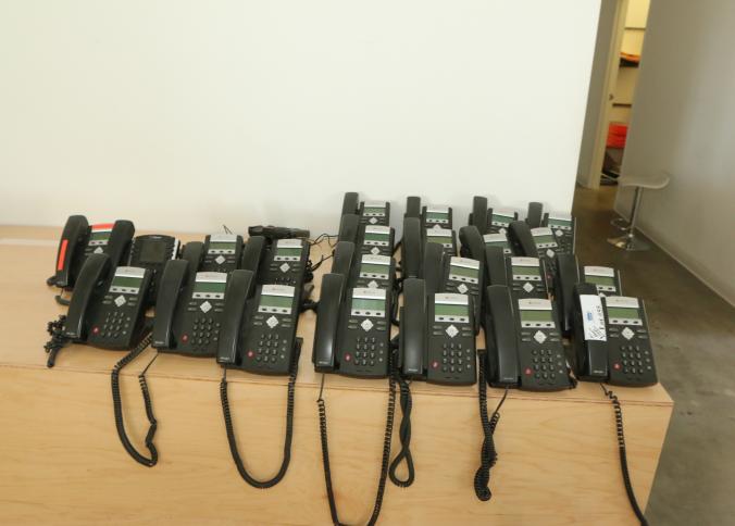 Polycom telephones, over 20 total, also including one conference speaker phone.