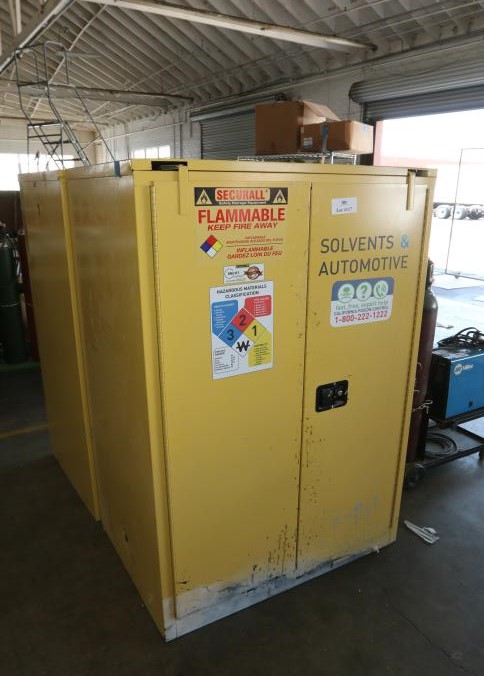 Securall flammable safety storage cabinet model A390 90 gallon capacity 43"x31"x66.5"T. Pickup can be completed on both days.
