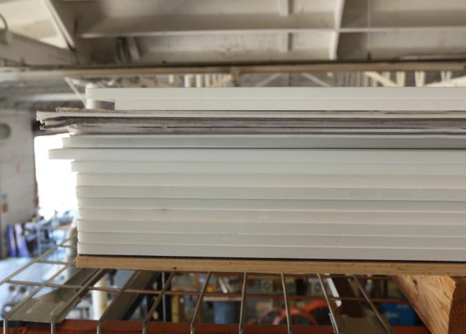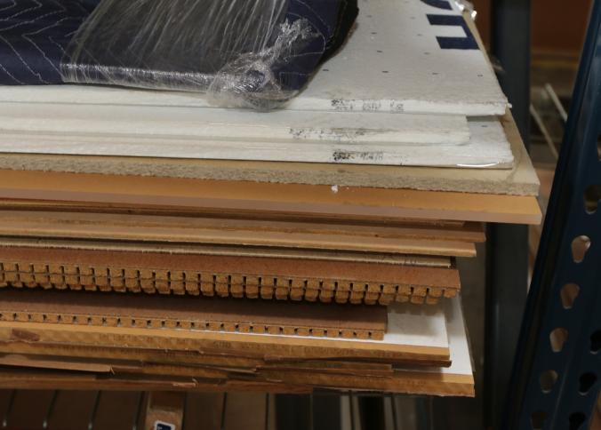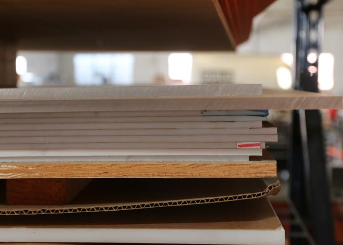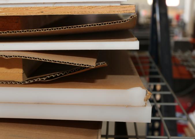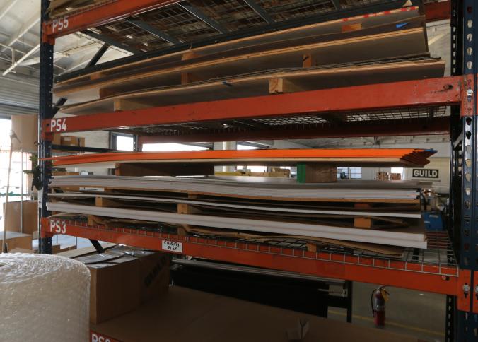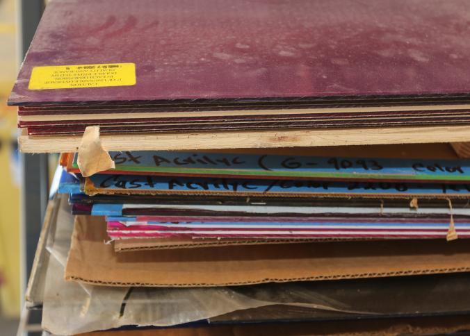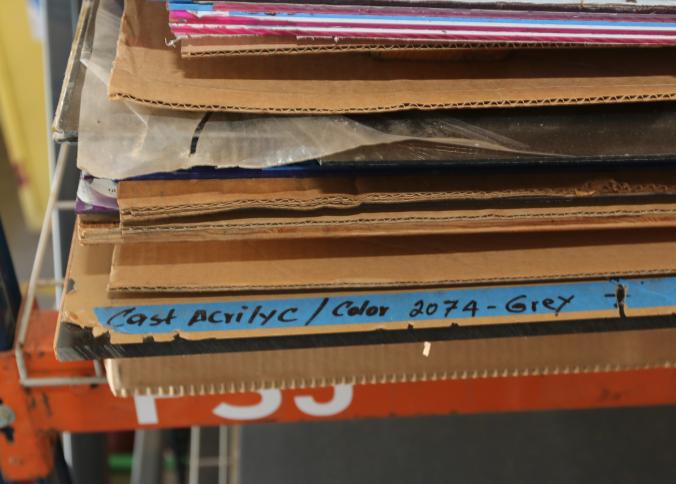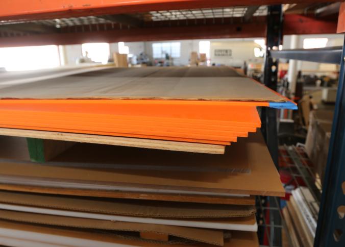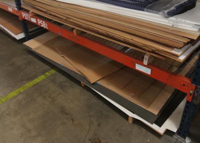 Material stock including acrylic board, PVC board, plywood, cast acrylic, cardboard, bubble wrap, etc. Buyer must take all. Pickup must be completed Thursday, September 15 by 3PM..