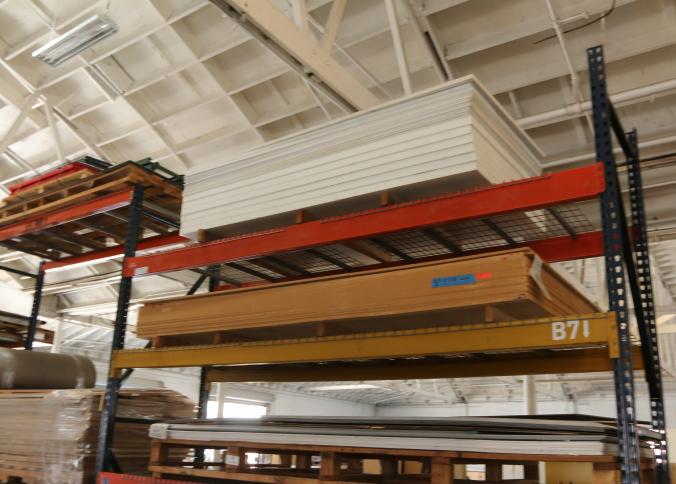 Heavy Duty pallet racking with 15 shelves and five sets of uprights for a variety of setups approx 12' tall. Bolted to the floor. Excluding contents. Buyer is responsible for bringing all the proper tools, equipment and help for the proper and safe removal of items. Pickup day 2.