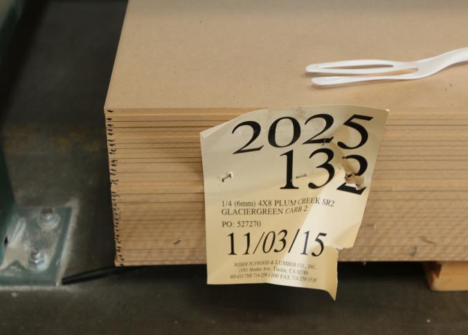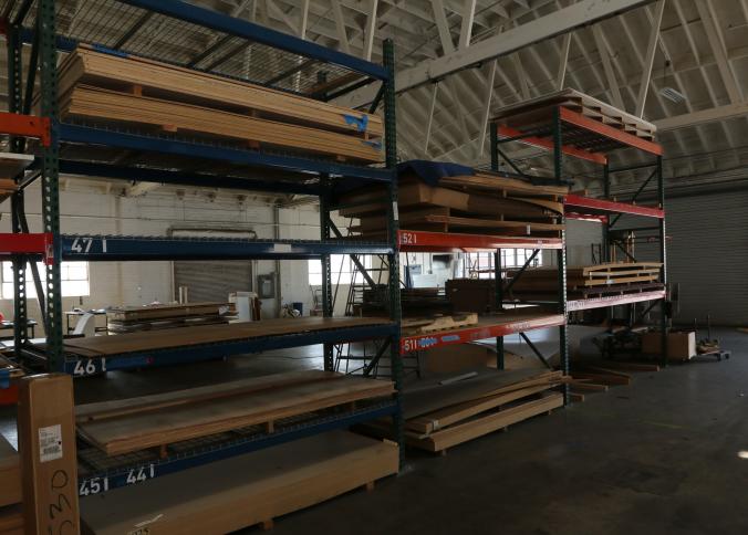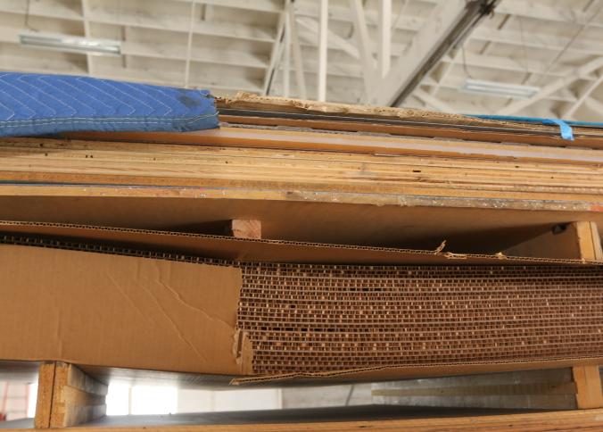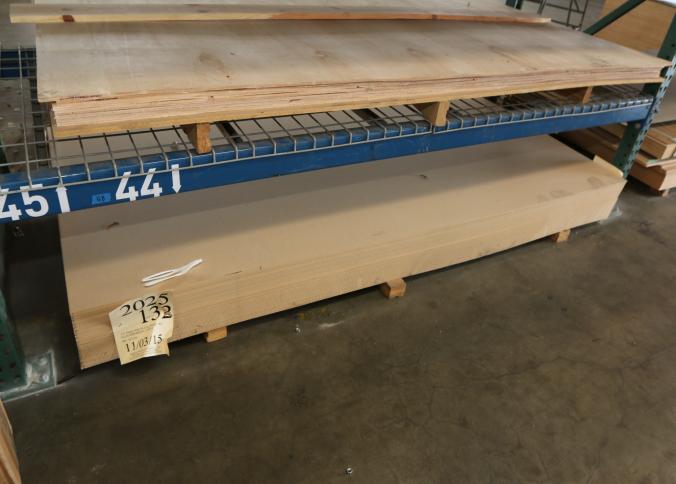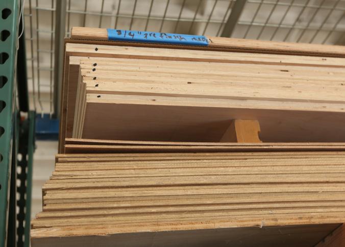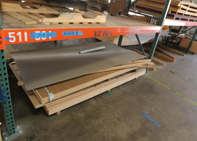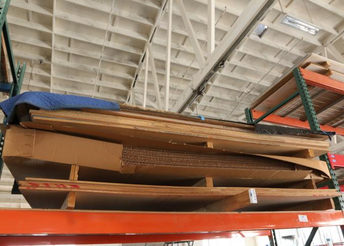 Material stock including 3/4" plywood, 1/2" plywood, 1/4" 4x8 Plum Creek, corrugated cardboard, MDF from 1/4" to 3/4", OSB, etc. Buyer must take all. Pickup must be completed Thursday, September 15 by 3PM..
