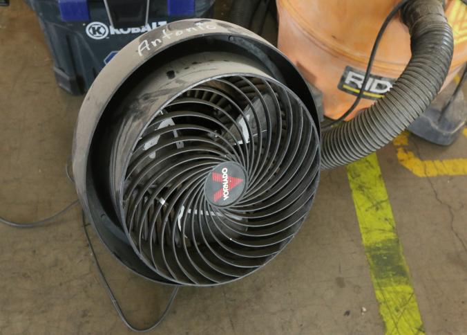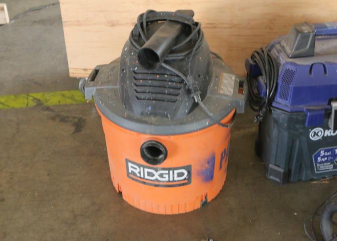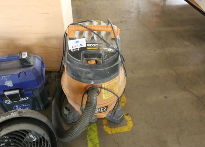 Ridgid 6 gallon shop vac, Kobalt 5 gallon shop vac and Ridgid 14 gallon professional shop vac on caster, also includes one electric fan. Buyer must take all. Pickup can be completed on both days.