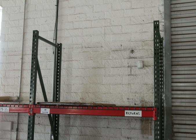 Medium duty pallet racking with 12 shelves and five uprights. Approx 200"x24"x96"T. Pickup day 2.