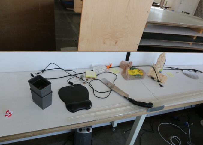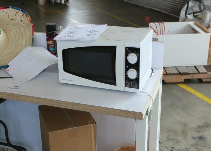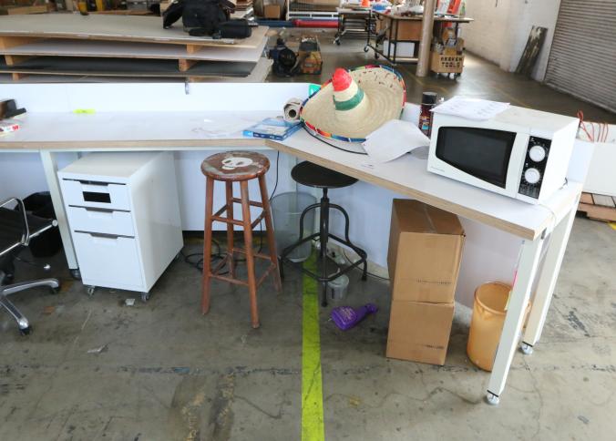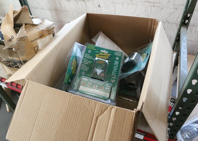 Remaining contents of shop reception area including filing cabinet, Soundsticks speakers, microwave, stool, sombrero, whiteboard, Automatic battery tenders, etc. Buyer must take all. Excludes racking and other lots. Pickup must be completed Thursday, September 15 by 3PM..