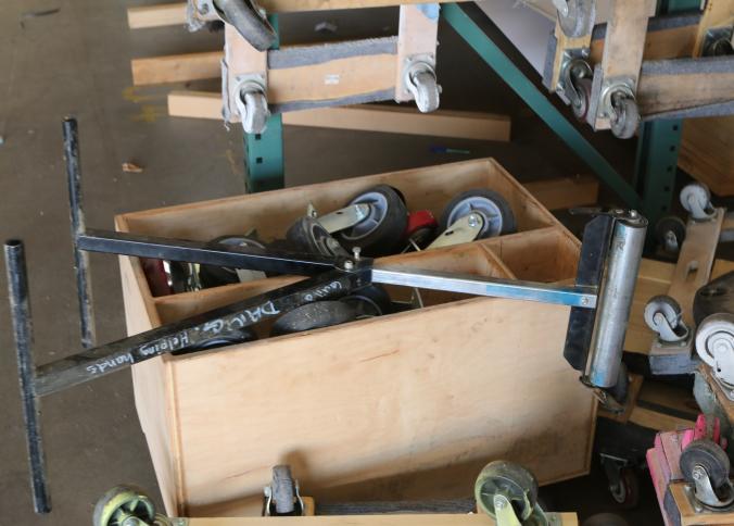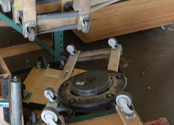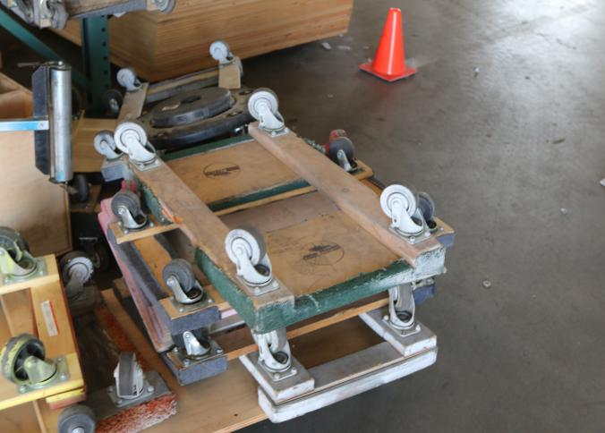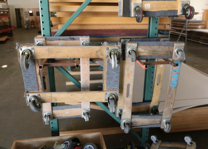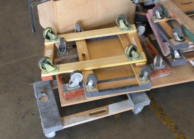 Four wheel flat dollies some with carpeted edges, and assorted casters. Pickup must be completed Thursday, September 15 by 3PM..