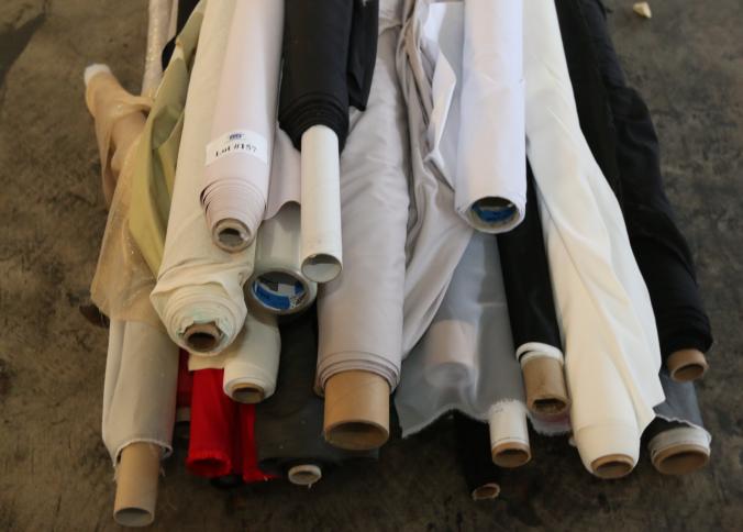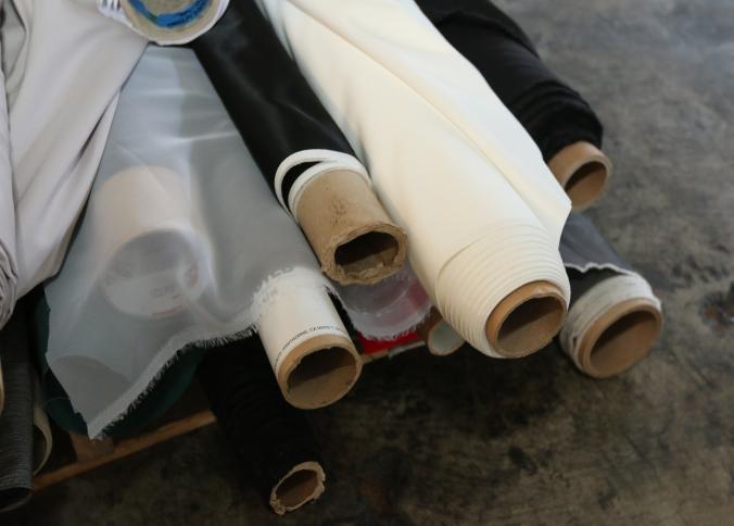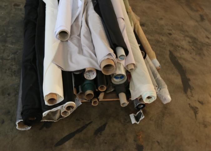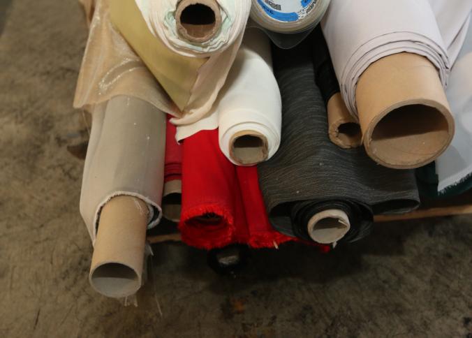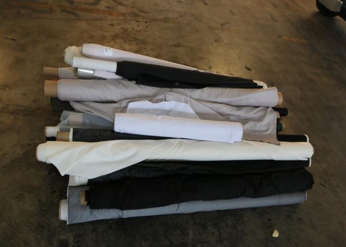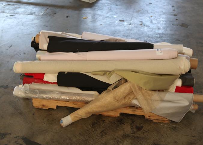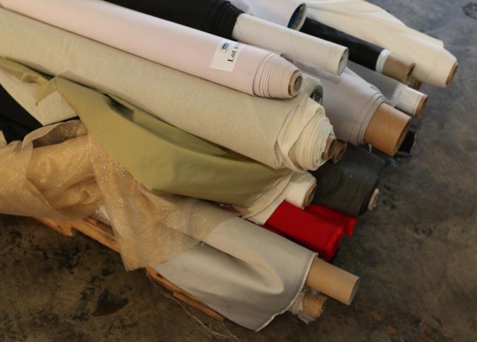 Rolls of assorted fabric. Pickup can be completed on both days.