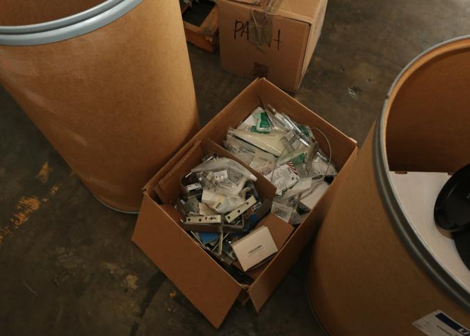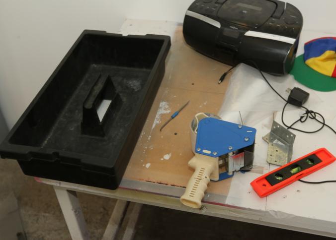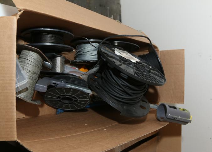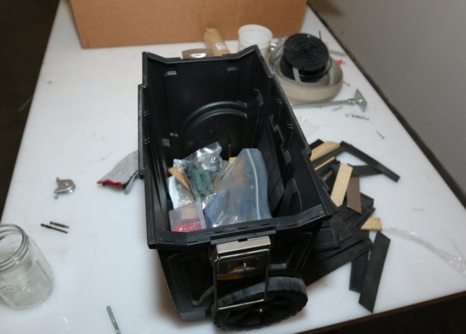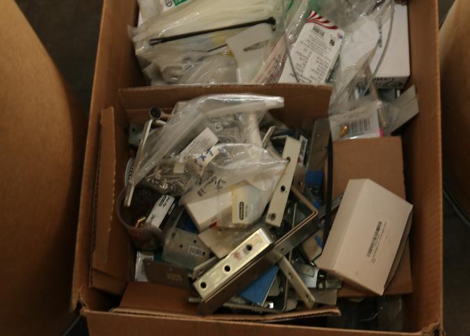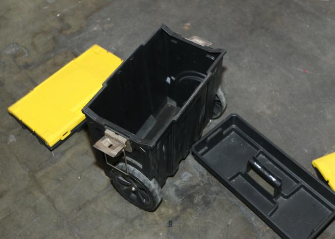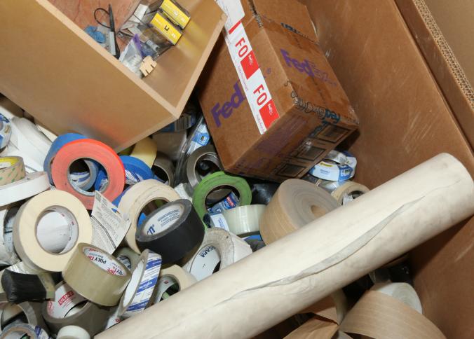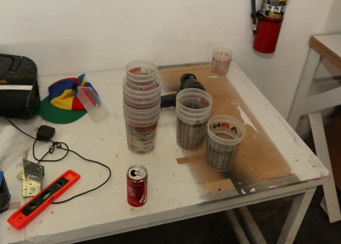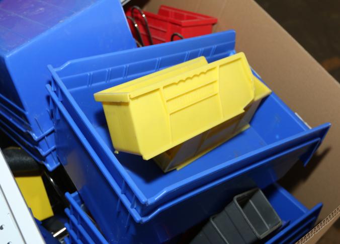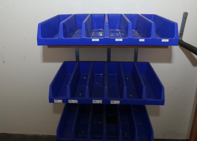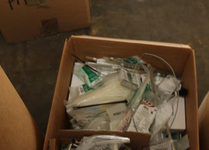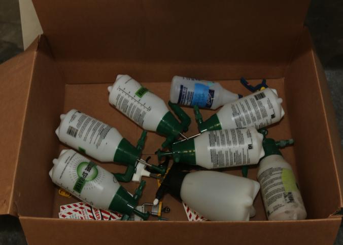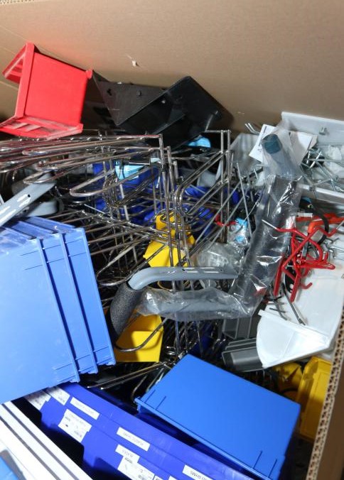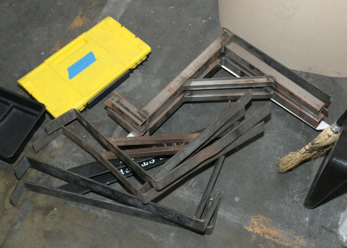 Cleaning supplies including mops, buckets, dust pans, spray cleaners, green sweep sweeping compound, garbage cans, light duty storage shelves, Drano, gas can, Clorox, Neutra Air, Pine Sol, tape, sprayers, prep tables 30.5"x96" and 48"x96", shop vacuum, plastic storage racks, etc. Buyer must take all. Pickup can be completed on both days.