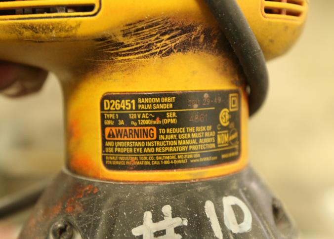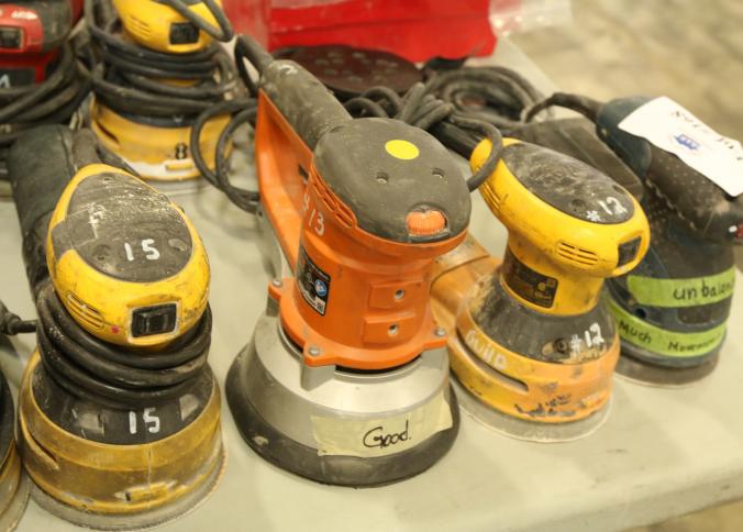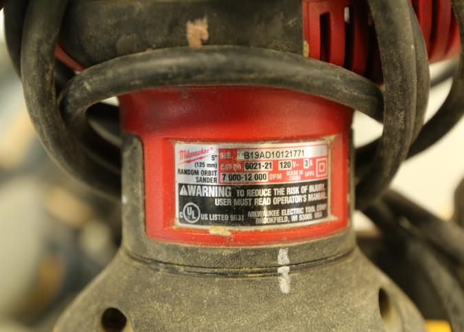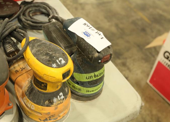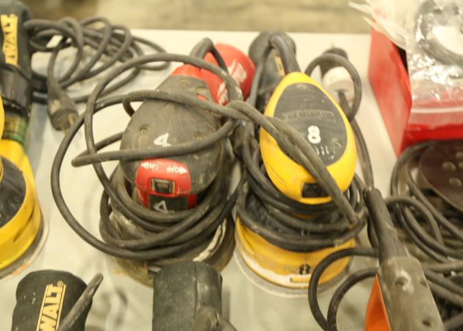 Orbital sanders including DeWalt D26451, Milwaukee 5" random orbit sander, Chicago Electric Power Tools model 95020, etc. Buyer must take all. Pickup must be completed Thursday, September 15 by 3PM..