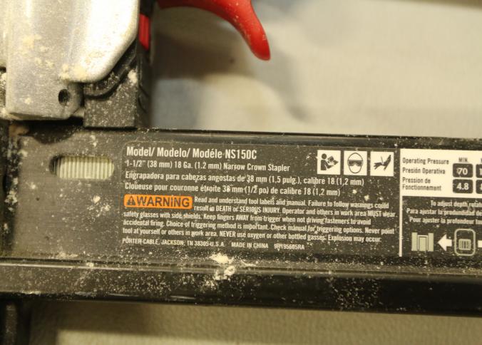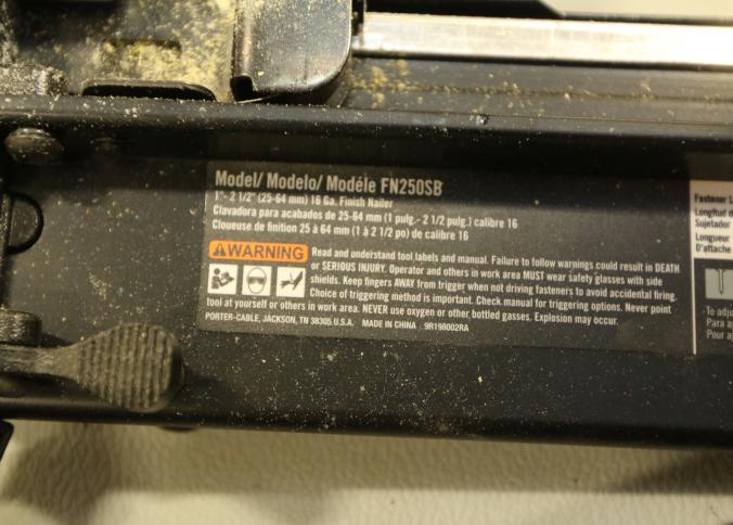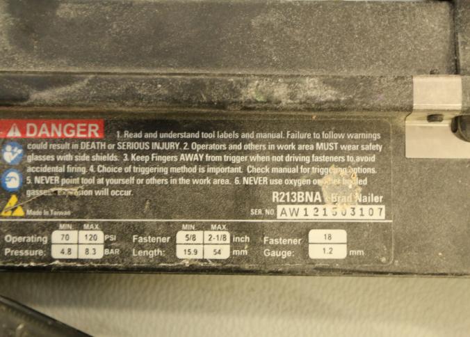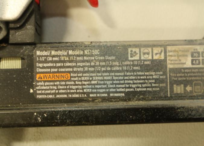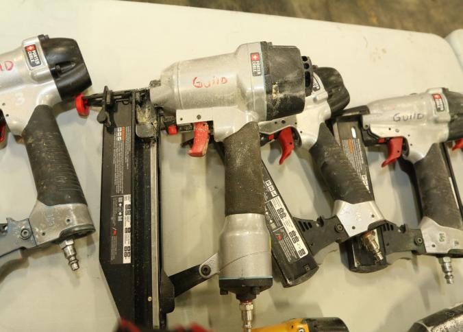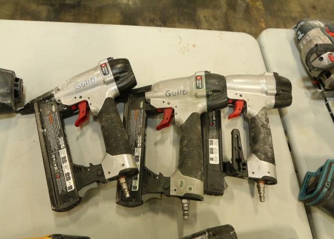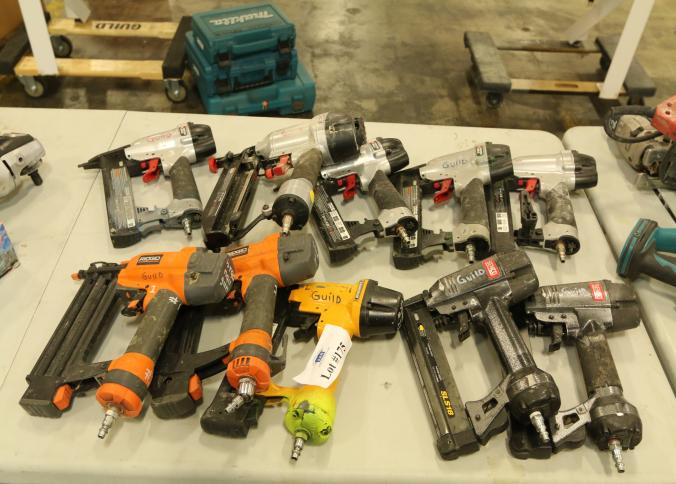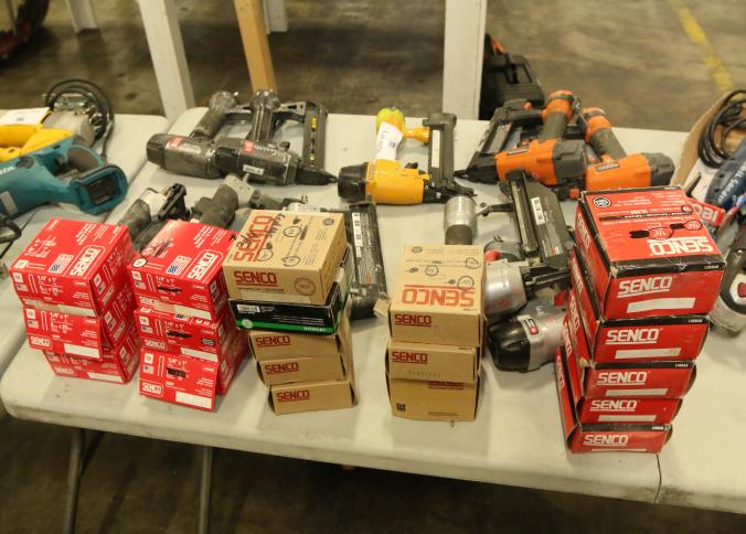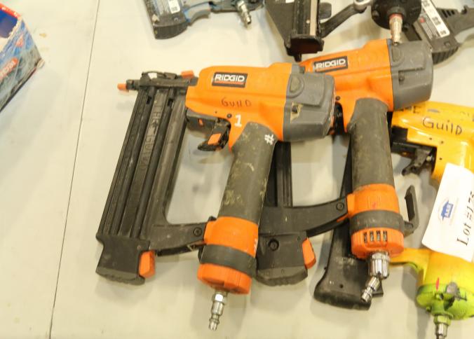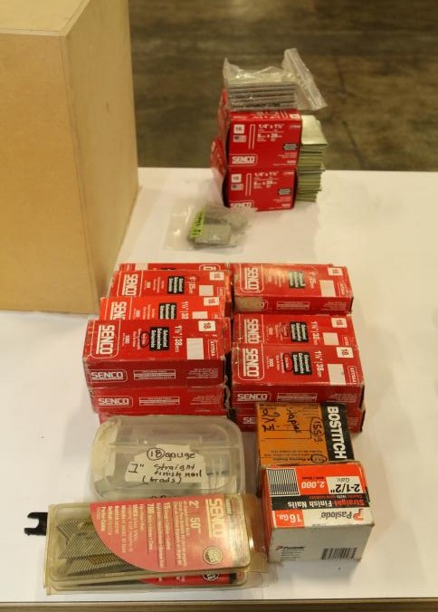 Pneumatic fasteners including Ridgid model R213BNA brad nailer serial AW121503107, Senco model SLS18, Porter Cable model NS150C, Porter Cable model FN250SB, etc. Also includes assorted fasteners including Senco and Bostitch. Buyer must take all. Pickup must be completed Thursday, September 15 by 3PM..