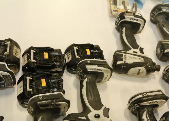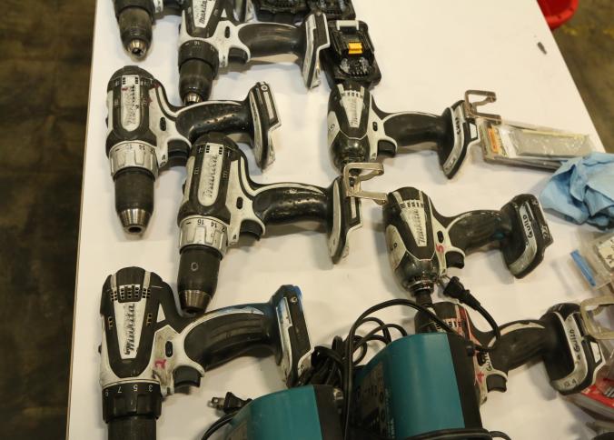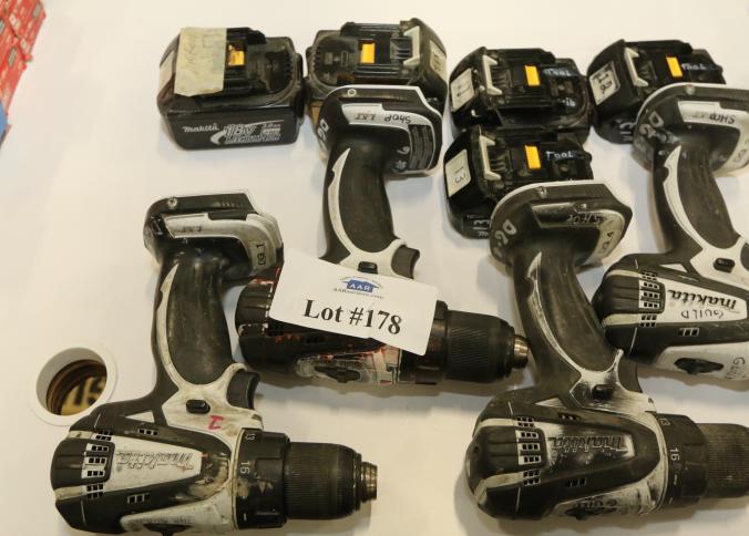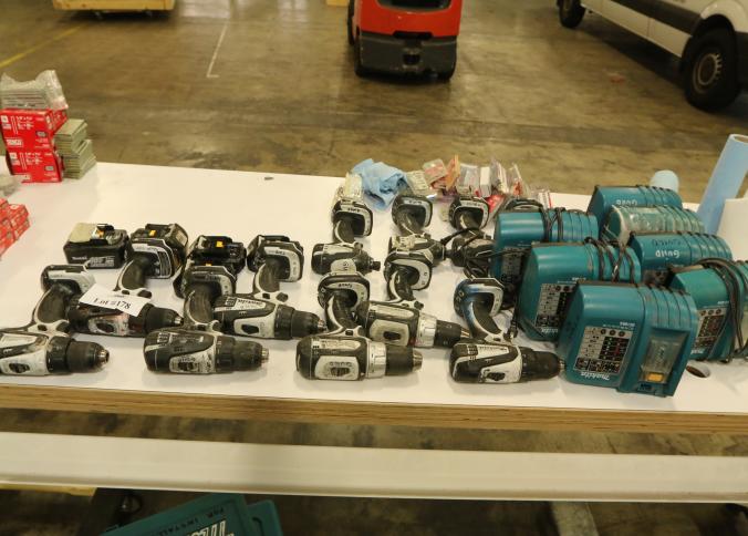 Makita battery powered hand tools including drill drivers and mini impact, models include LXFD01, BDF452, and seven chargers. Buyer must take all. Pickup must be completed Thursday, September 15 by 3PM..