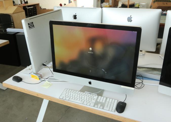 Three Apple iMac aluminum unibody computers two non-working, I series processor, this series iMac came with 500 GB to 2TB or 256GB SSD, installed hard drive size unknown, also incl keyboard and mouse. All personal and sensitive information wiped from machine. Has working operating system. Pickup must be completed Thursday, September 15 by 3PM..