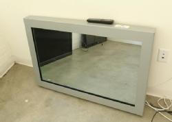 Samsung flat screen TV with remote in a metal two way mirror wall mount. Pickup can be completed on both days.