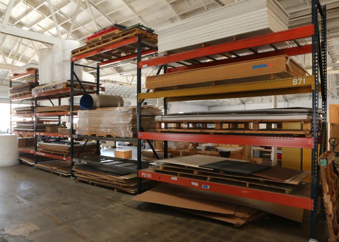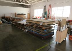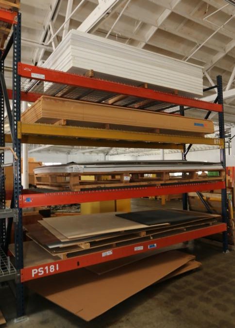 Material stock including 1/2" 5x10 MDF, PVC sheets, mirror metal, PSG plastics, etc. Buyer must take all. Pickup must be completed Thursday, September 15 by 3PM..