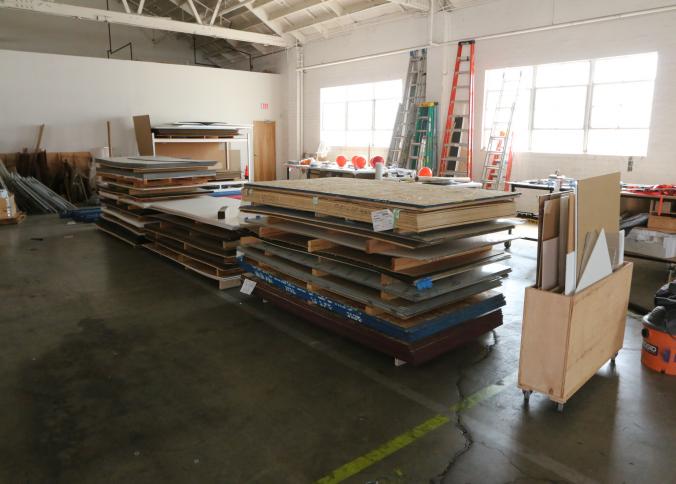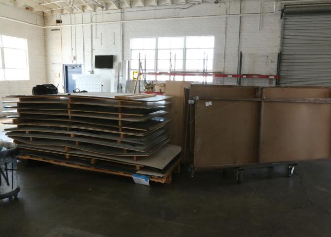 Material stock including 3/4" plywood, 1/2" plywood, 1/4" 4x8 Plum Creek, corrugated cardboard, MDF from 1/4" to 3/4", OSB, etc. Buyer must take all. Pickup must be completed Thursday, September 15 by 3PM..