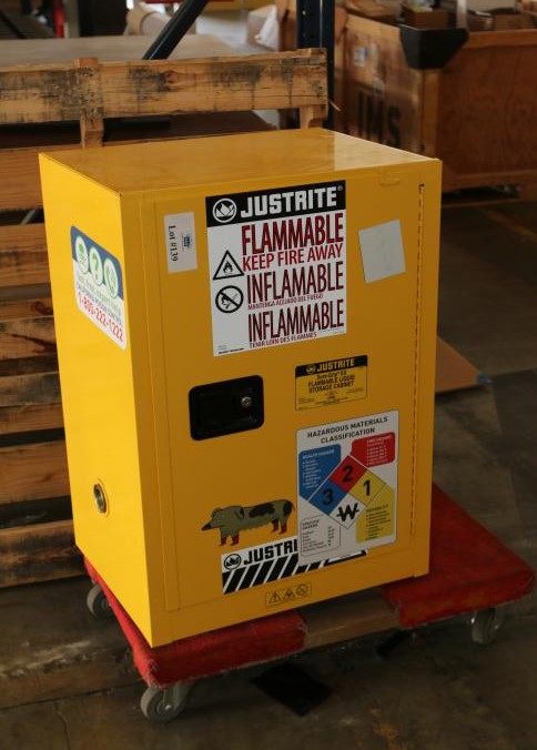 Justrite sure-grip EX flammable liquid storage cabinet 12 gallon capacity. Pickup must be completed Thursday, September 15 by 3PM..