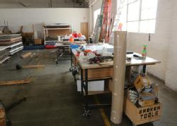 Contents of shipping area including ratchet straps, liquid nails, prep tables, hammer, stretch wrap, labels, tape, cardboard, foam board, corrugated cardboard, bubble wrap, cleaners, shipping tubes, etc. Buyer must take all. Pickup can be completed on both days.