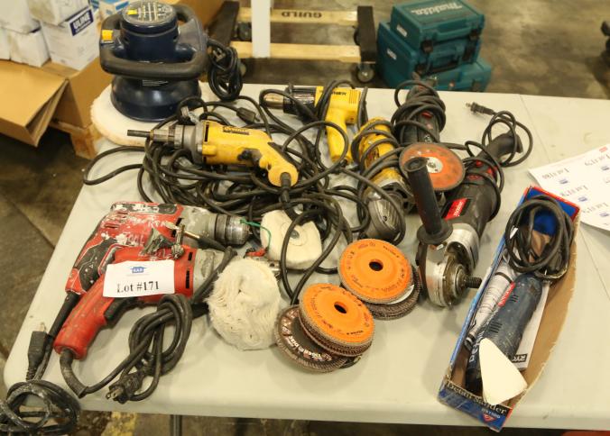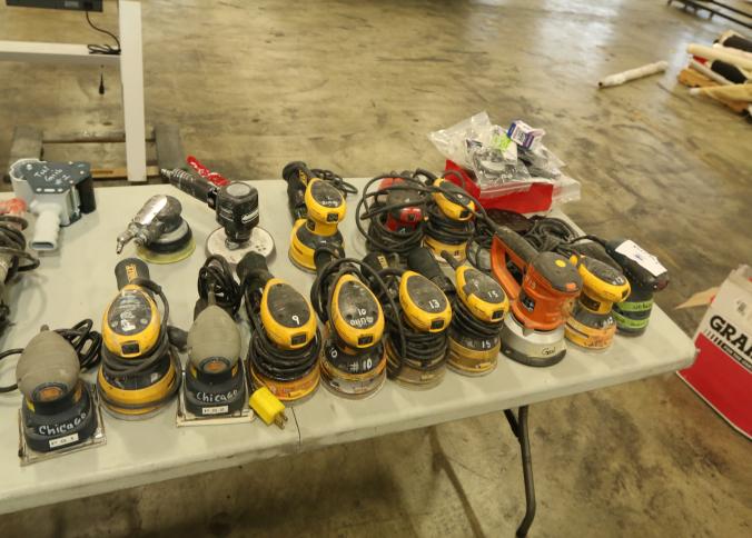 Orbital sanders including DeWalt D26451, Milwaukee 5" random orbit sander, Chicago Electric Power Tools model 95020, etc. Buyer must take all. Pickup must be completed Thursday, September 15 by 3PM..