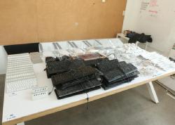 Computer hardware including keyboards, computer stands, power cords, mouse, etc. Pickup must be completed Thursday, September 15 by 3PM..