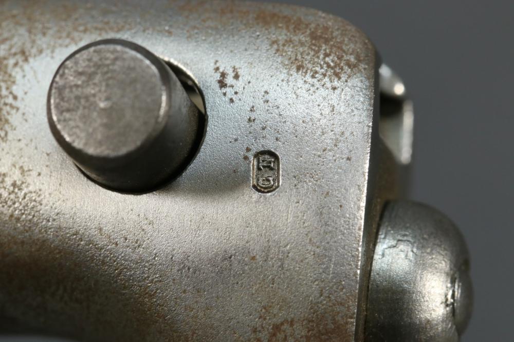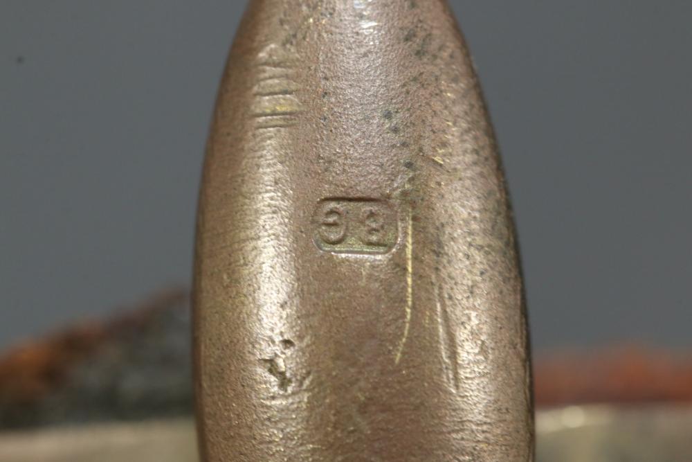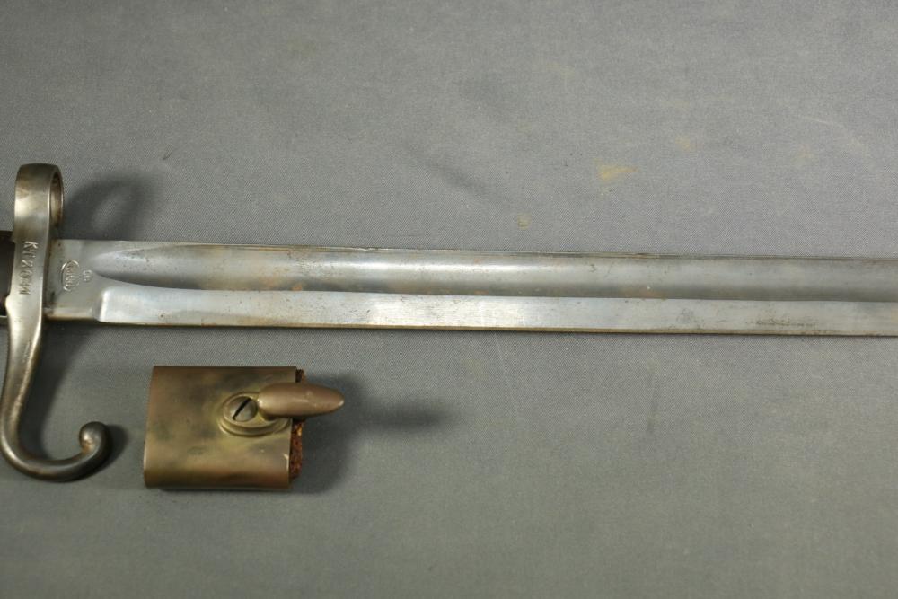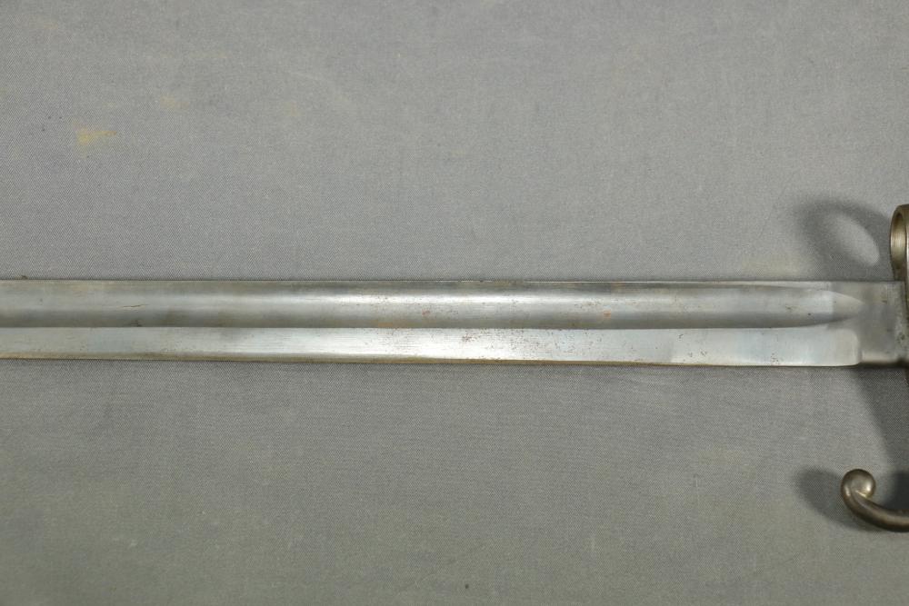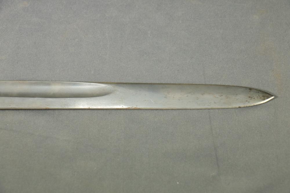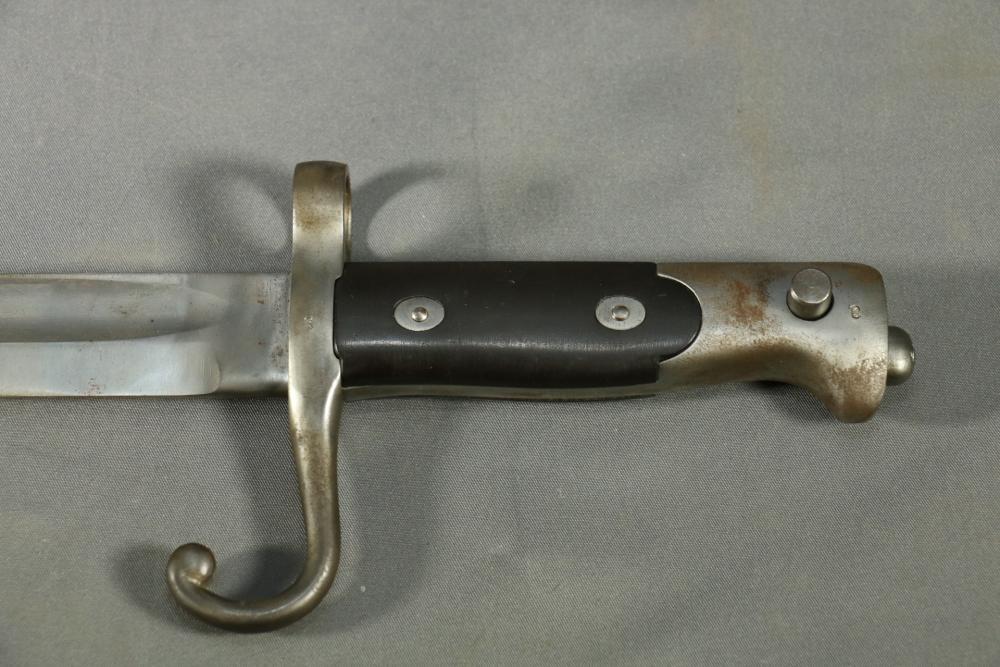 Believed to be Italian Sword bayonet for M1871 Vetterli rifles marked on ricasso "RS" and "Terni" both within respective ovals reverse blank, serial number on cross guard "KT2041", cross guard, pommel, and press stud marked "CN", length of bayonet 25.5"L.