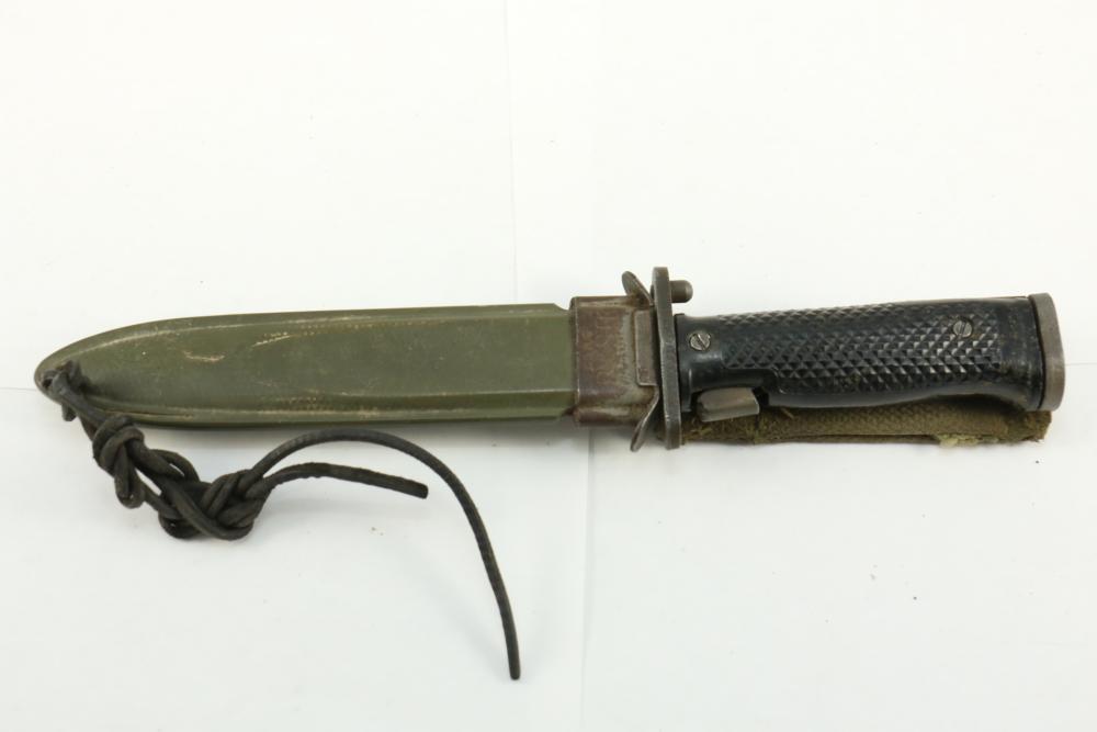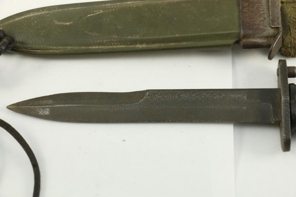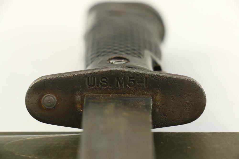 "U.S. M5-1 Aerial" marked on cross guard, bayonet in M8 scabbard, marked "U.S.M8 B.M.Co., length of bayonet without scabbard measuring 11.25"L.