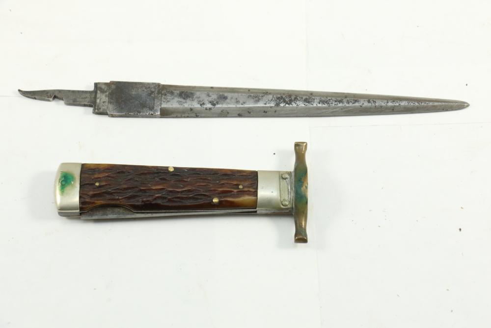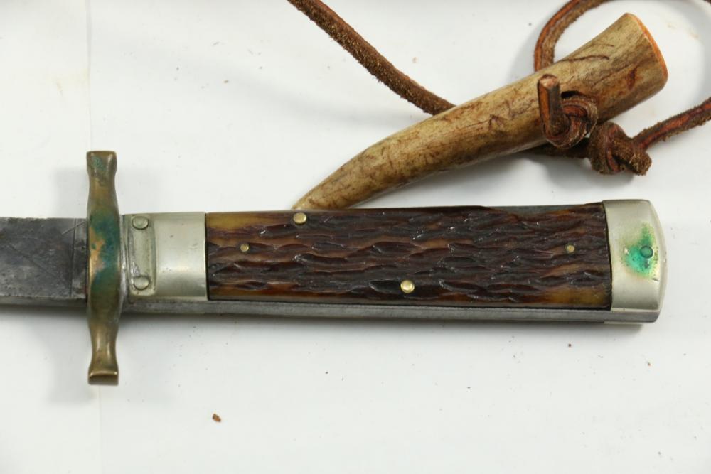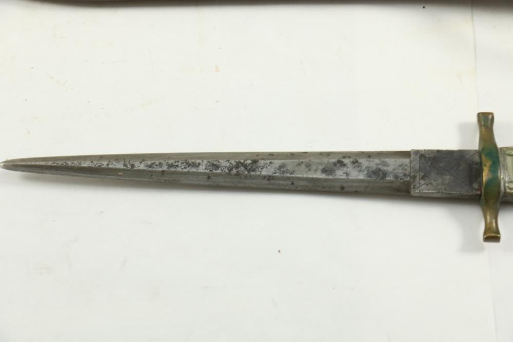 Items include Deutsches Rotes Kereuz (DRK) subordinate's hewer; WWI U.S. 1917 trench knife knuckle duster; Moroccan sword scimitar; French Yataghan sword bayonet; Buffalo Bill Bowie knife; Inox boot knives in sheaths; Spanish Cavalry Officer's sword; Japanese Gunto sword in scabbard; decorative hanging chest armor with crest; fencing swords; miniature cannons; Chelsea Clock Co. U.S. Army clock; Harvard Lock Company cast iron bell; Nylglo 100% nylon Coast guard flag on flagpole; military literature; military clothing camouflages, hat, belts; U.S. Navy MK1 spyglass; metal ammo can and more. Items located in Pleasant Valley, NY.