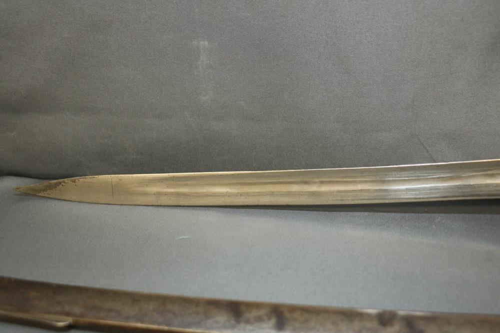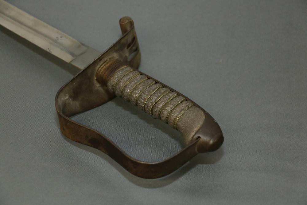 Items include Deutsches Rotes Kereuz (DRK) subordinate's hewer; WWI U.S. 1917 trench knife knuckle duster; Moroccan sword scimitar; French Yataghan sword bayonet; Buffalo Bill Bowie knife; Inox boot knives in sheaths; Spanish Cavalry Officer's sword; Japanese Gunto sword in scabbard; decorative hanging chest armor with crest; fencing swords; miniature cannons; Chelsea Clock Co. U.S. Army clock; Harvard Lock Company cast iron bell; Nylglo 100% nylon Coast guard flag on flagpole; military literature; military clothing camouflages, hat, belts; U.S. Navy MK1 spyglass; metal ammo can and more. Items located in Pleasant Valley, NY.