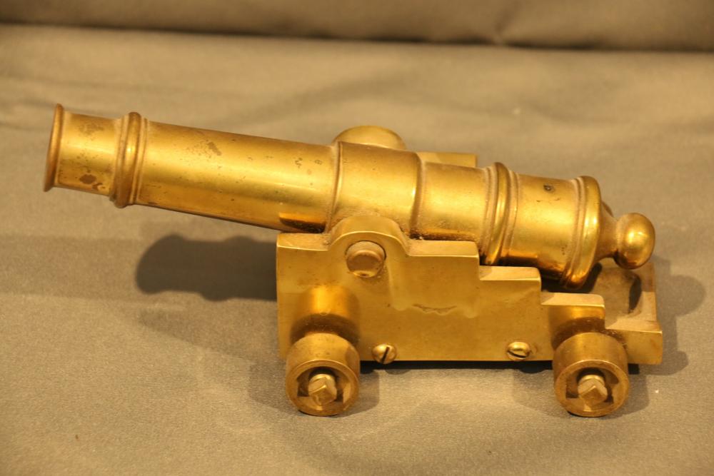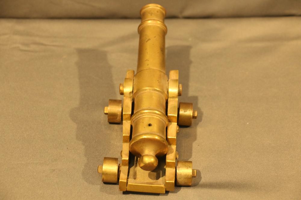 Items include Deutsches Rotes Kereuz (DRK) subordinate's hewer; WWI U.S. 1917 trench knife knuckle duster; Moroccan sword scimitar; French Yataghan sword bayonet; Buffalo Bill Bowie knife; Inox boot knives in sheaths; Spanish Cavalry Officer's sword; Japanese Gunto sword in scabbard; decorative hanging chest armor with crest; fencing swords; miniature cannons; Chelsea Clock Co. U.S. Army clock; Harvard Lock Company cast iron bell; Nylglo 100% nylon Coast guard flag on flagpole; military literature; military clothing camouflages, hat, belts; U.S. Navy MK1 spyglass; metal ammo can and more. Items located in Pleasant Valley, NY.
