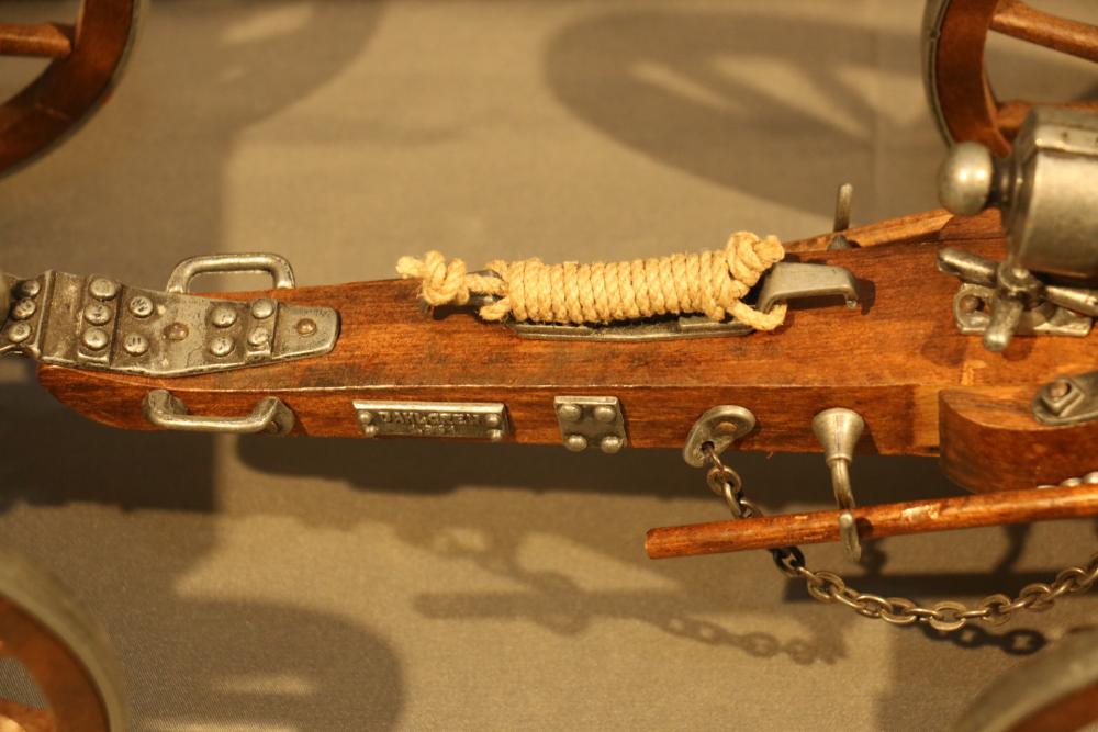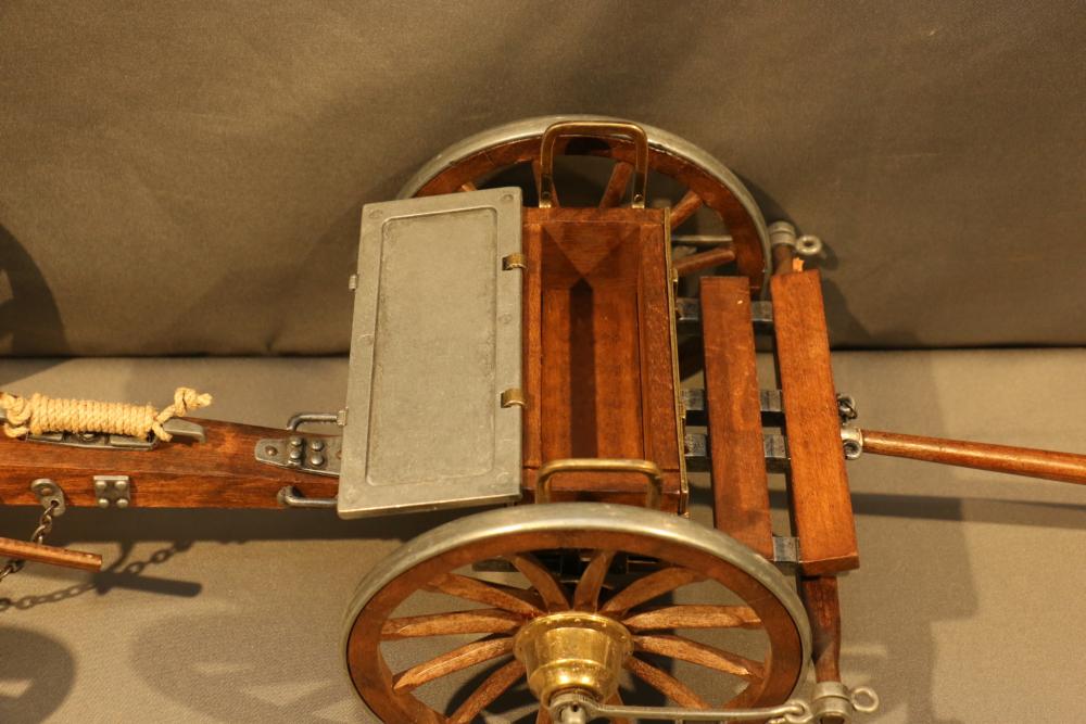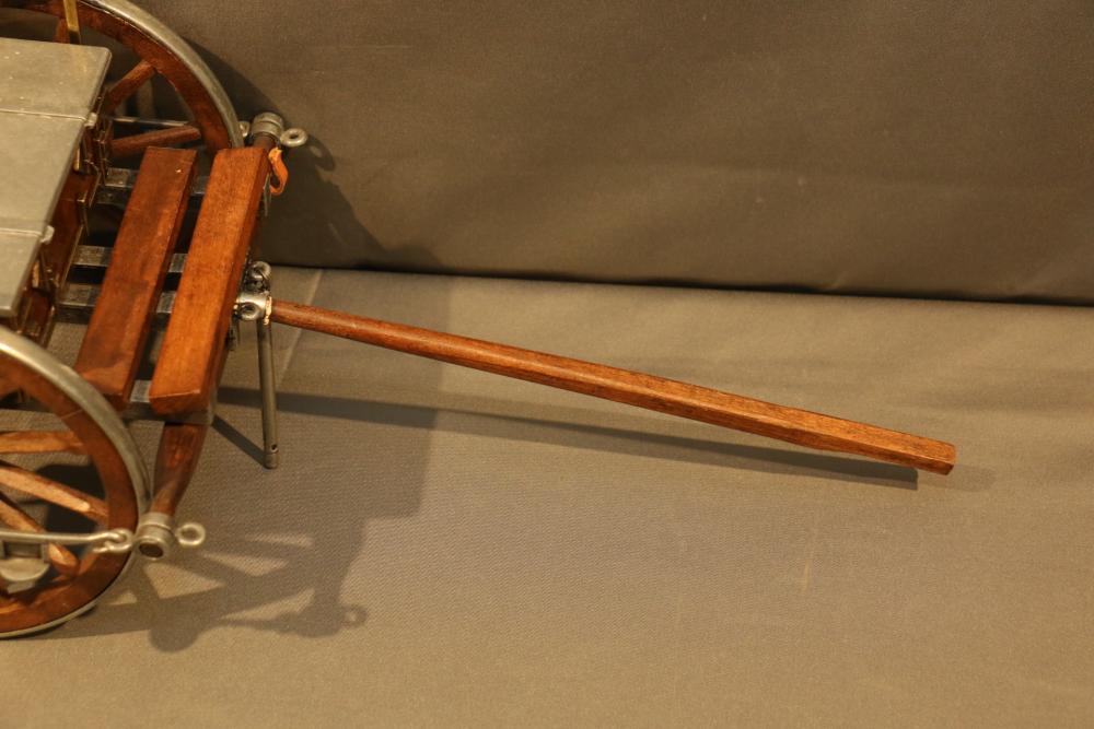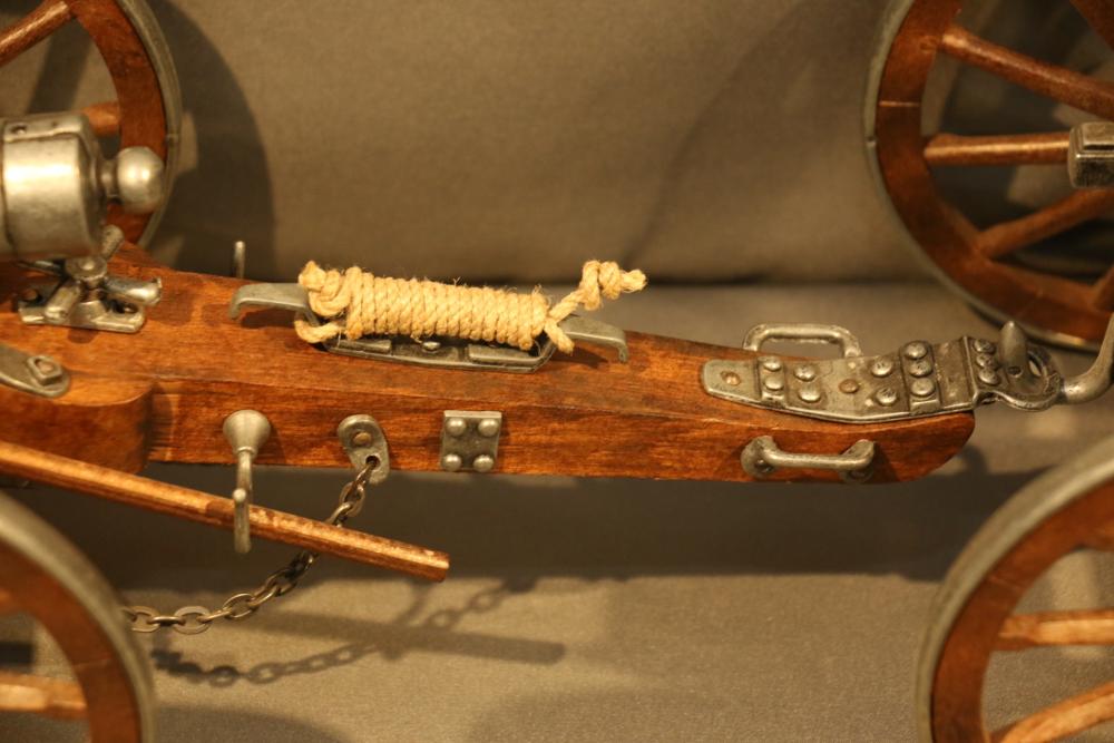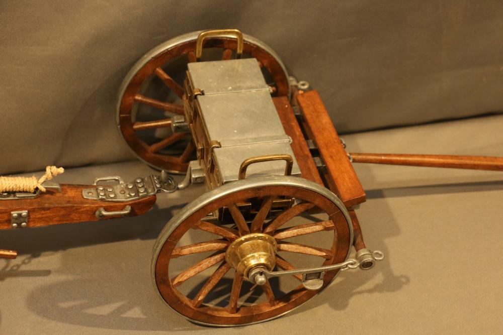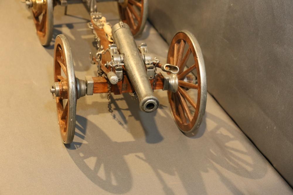 Pewter and wood replica of an American Civil War cannon and limber with label "Dahlgren 1861", approx 29"L X 9.25" X 6.5"T.