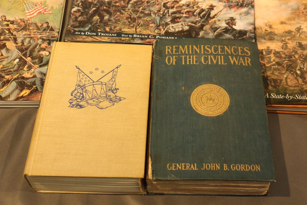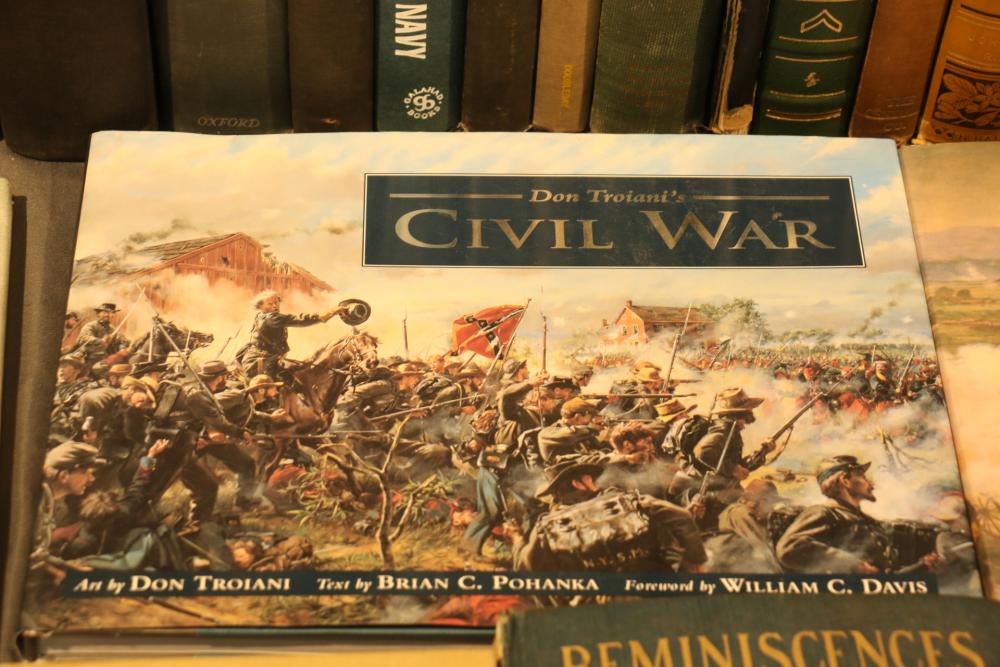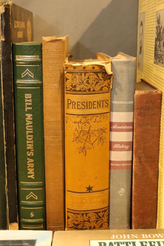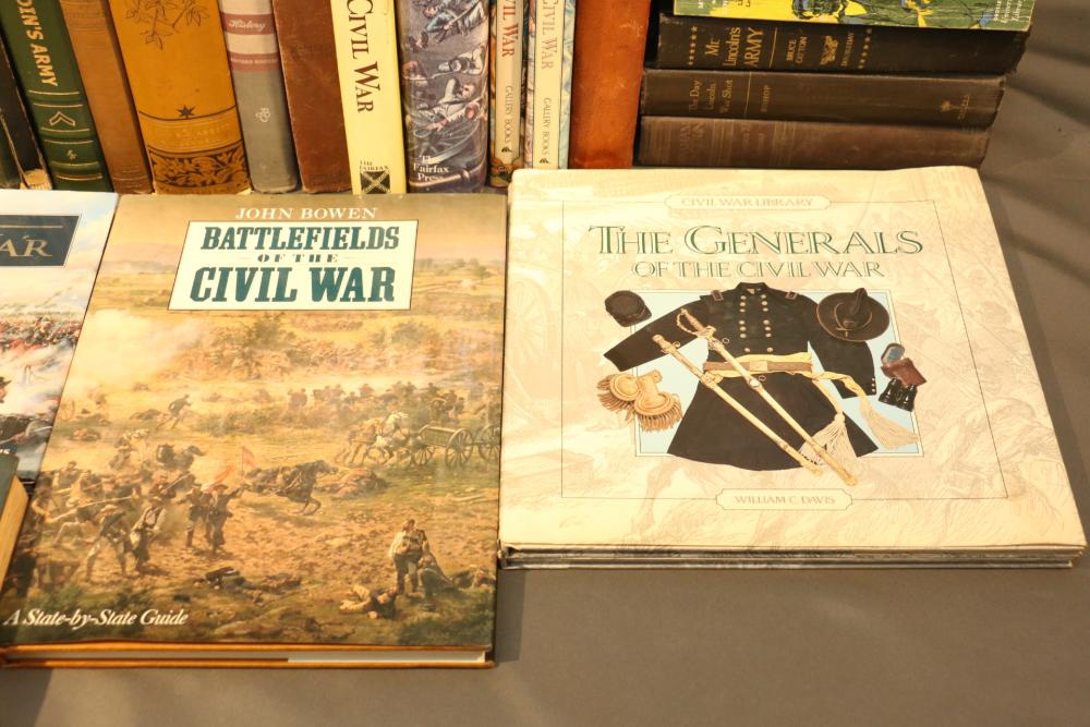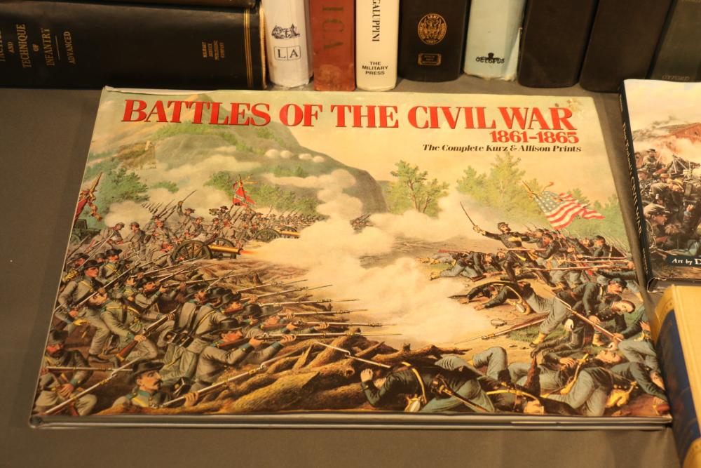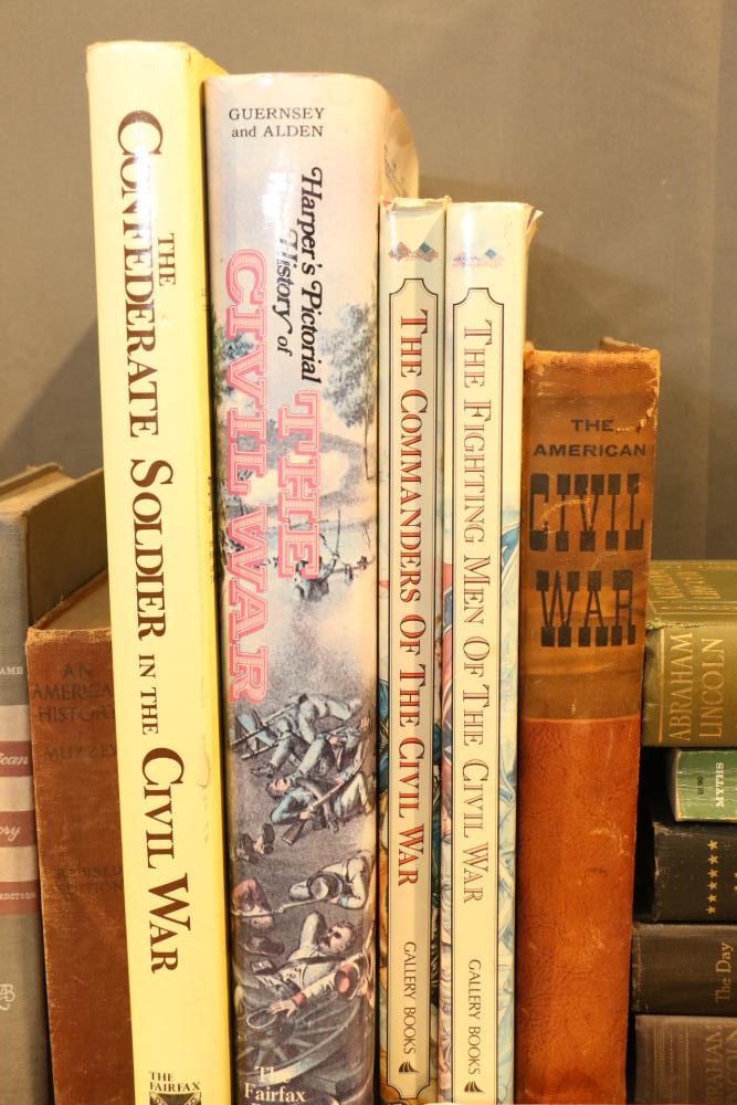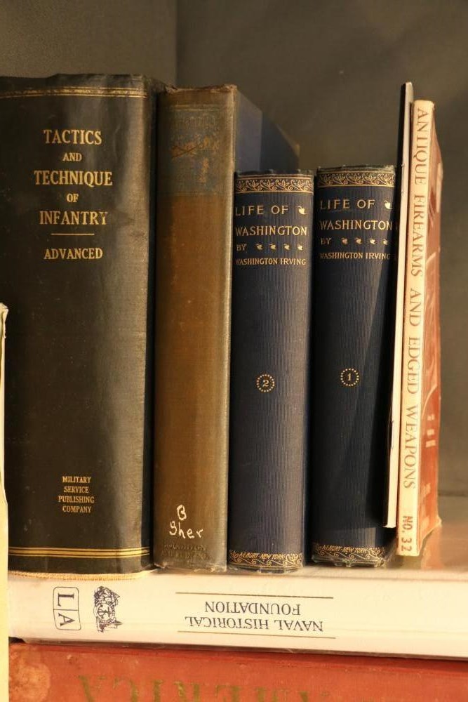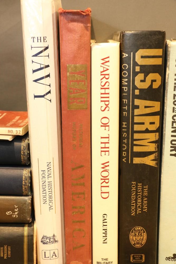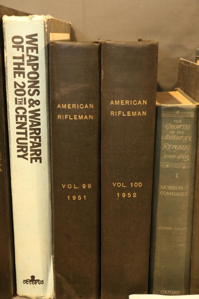 Military literature incl "U.S. Army A Complete History" by The Army Historical Foundation, "The Navy" by Naval Historical Foundation, "The Common Soldiers in the Civil War" by Bell Irvin Wiley, "Warships of the World" by Galuppini, "American Rifleman Vol 99 (1951) & 100 (1952)", "Tactics and Technique of Infantry Advanced", "Life of Washington 1 and 2" by Washington Irving, "Weapons & Warfare of the 20th Century", "The Growth of the American Republic" by Morison Commager, "Naval History of the United States Vol I and II", "The Naval Academy Illustrated History of the United States Navy" by Potter, "Bill Mauldin's Army", "The Confederate Soldier in the Civil War", "The Fighting Men of the Civil War" and "The Commanders of the Civil War" by Gallery Books, "The American Civil War", "Reminiscences of the Civil War" by General John B. Gordon, "Harper's Pictorial History of The Civil War", "The Day Lincoln Was Shot" by Bishop, "Mr. Lincoln's Army" by Bruce Catton, "Abraham Lincoln" by Nicolay, "The Generals of the Civil War", "Battlefields of the Civil War" by John Bowen, "Don Troiani's Civil War", etc, approx 40 books in total.