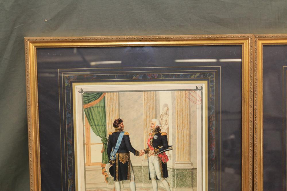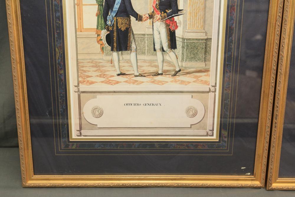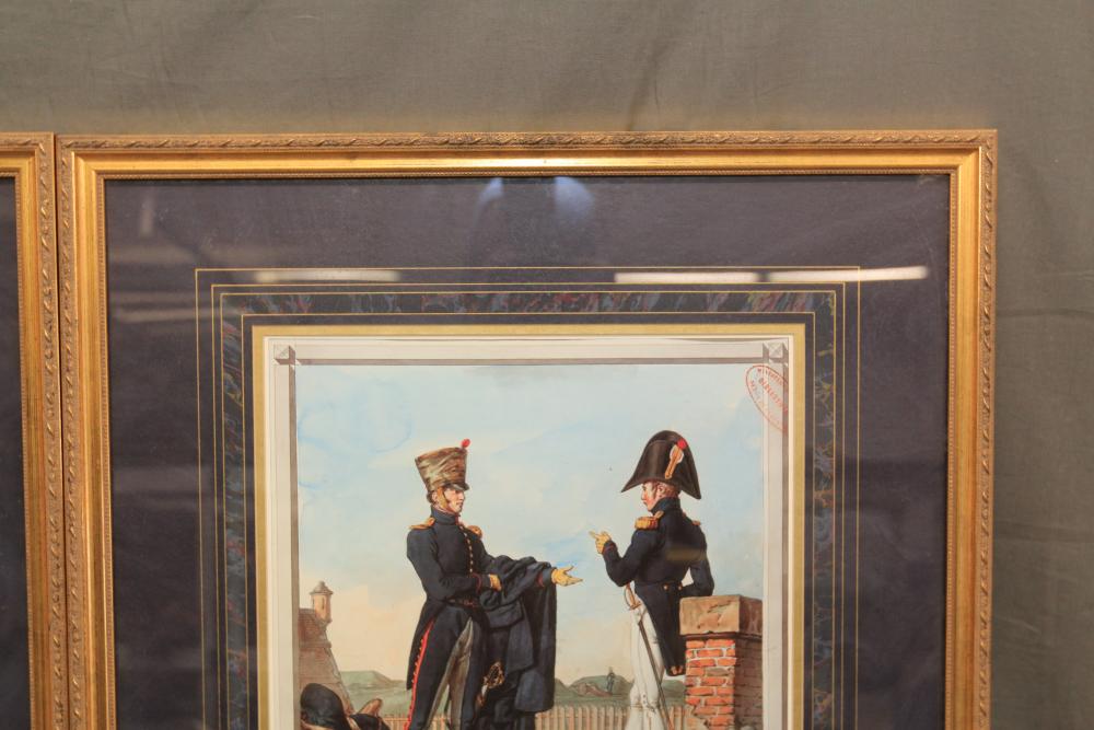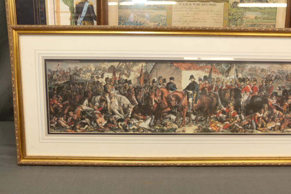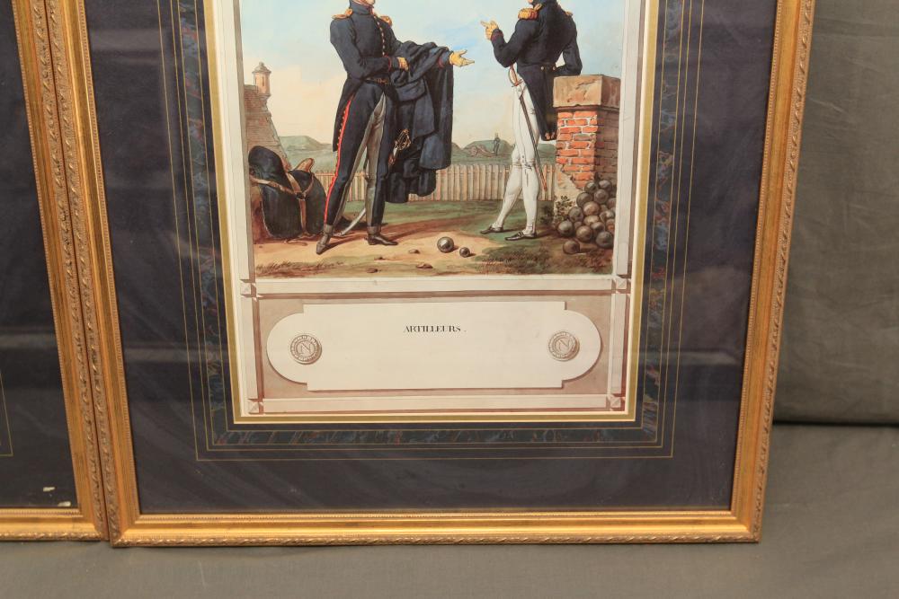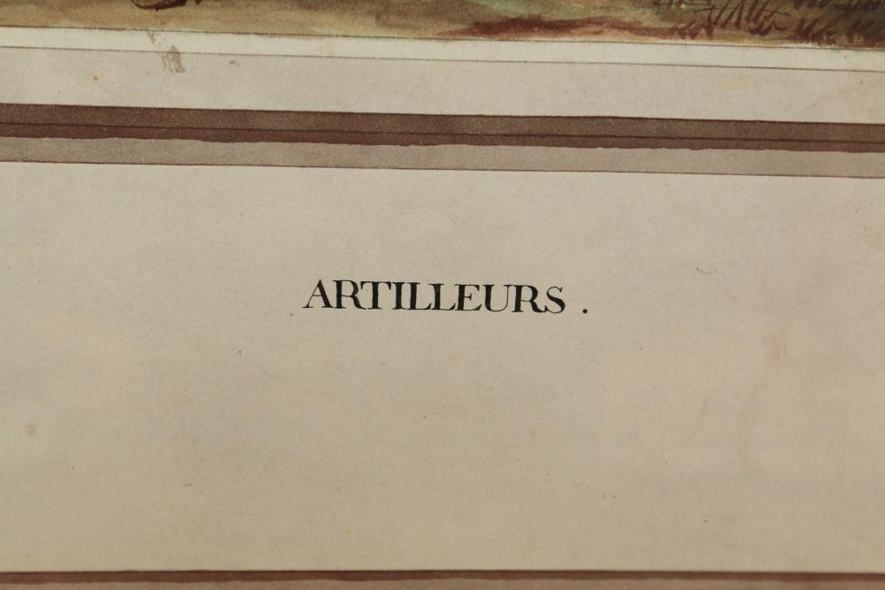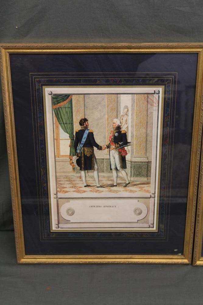 Framed artwork incl two prints titled "Officers Generaux" and "Artilleurs", print of post battle scene with officers on horses and people wearing red coats, "G.A.R. & War Record" marked on lower left "Entered According to Act of Congress in the Year 1888 by J.M. Vickroy, In the Office of the Librarian of Congress at Washington D.C." marked lower right "Published by J. M. Vickroy & Co Terre Haute, Indiana", Frederick Remington military personnel prints incl "Federal Zouave U.S.A.", "Calvaryman U.S.A.", "Artilleryman U.S.A.", "Infantry Officer U.S.A.", "Infantryman U.S.A.", "Drummer U.S.A.", "General Officer U.S.A.", "Confederate Zouave C.S.A.", "Calvaryman C.S.A.", "Artilleryman C.S.A.", "Infantry Officer C.S.A.", "Infantryman C.S.A.", "General of Cavalry C.S.A.", and "General Officer C.S.A." all marked lower right "FR", two being 6" x 61", largest being 23.5" x 30.5".