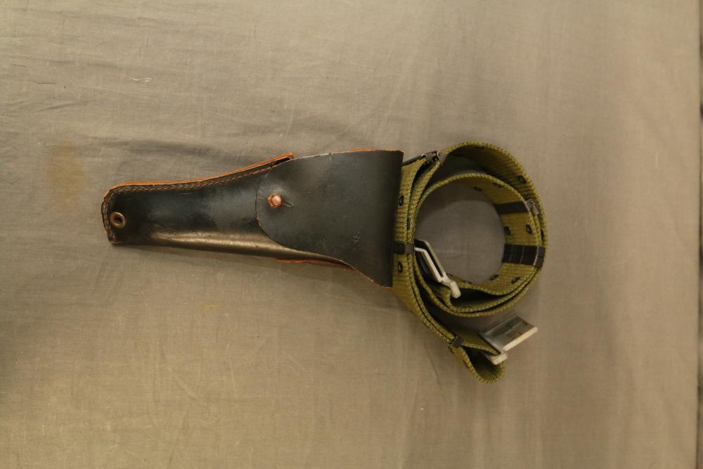 Items include Deutsches Rotes Kereuz (DRK) subordinate's hewer; WWI U.S. 1917 trench knife knuckle duster; Moroccan sword scimitar; French Yataghan sword bayonet; Buffalo Bill Bowie knife; Inox boot knives in sheaths; Spanish Cavalry Officer's sword; Japanese Gunto sword in scabbard; decorative hanging chest armor with crest; fencing swords; miniature cannons; Chelsea Clock Co. U.S. Army clock; Harvard Lock Company cast iron bell; Nylglo 100% nylon Coast guard flag on flagpole; military literature; military clothing camouflages, hat, belts; U.S. Navy MK1 spyglass; metal ammo can and more. Items located in Pleasant Valley, NY.