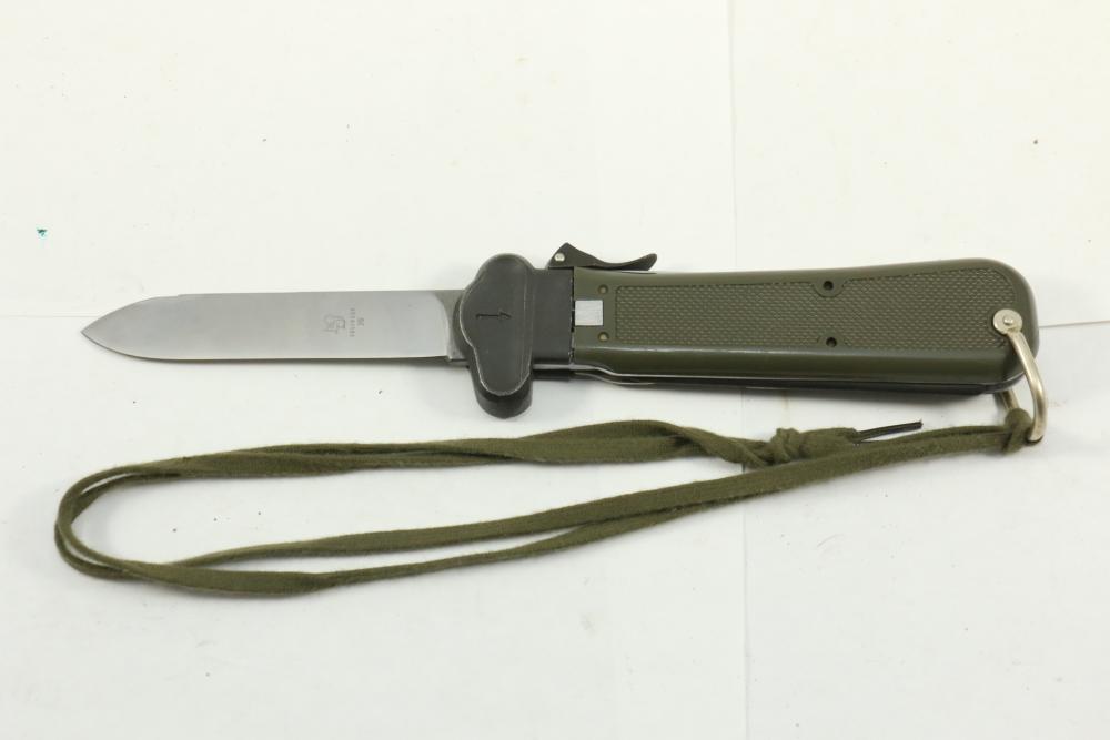 German special forces gravity knife marked on handle "BW", and on blade "Solingen", total length when closed 6"L.