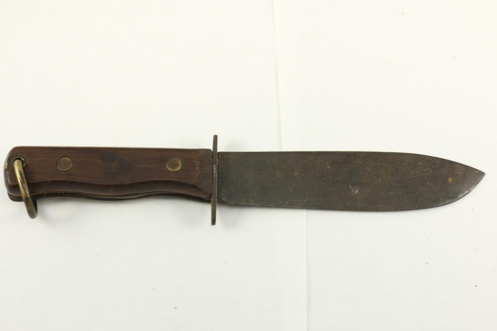 American Bolo knife marked on wood handle "US Boston 1863", having D-ring affixed to end of handle, length of blade measuring 7-1/8"L, length of handle including cross guard 5-3/8"L.