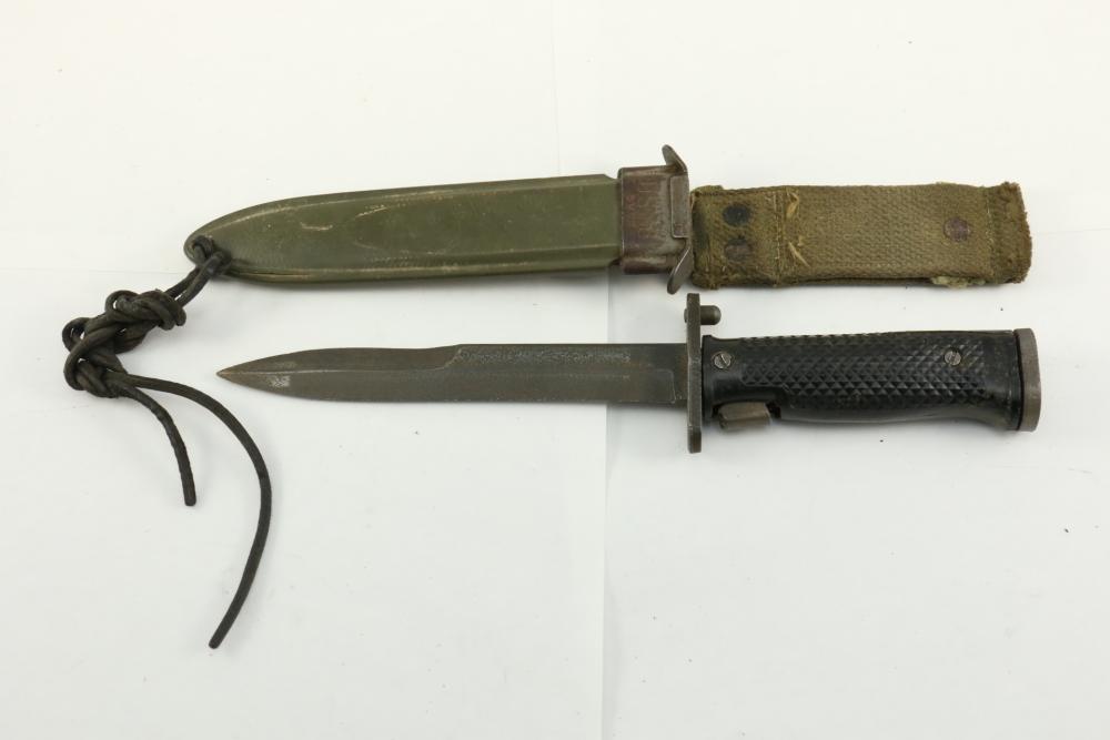 "U.S. M5-1 Aerial" marked on cross guard, bayonet in M8 scabbard, marked "U.S.M8 B.M.Co., length of bayonet without scabbard measuring 11.25"L.