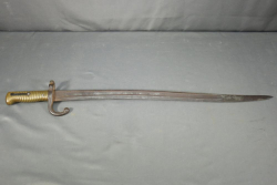 French Yataghan sword bayonet for M1866 Chassepot needle-fire rifle, having brass handle, ricasso marked with a "B" in a circle and an illegible marking next to it, cross guard with hallmarks and serial number 29808, spine marked appearing to read "St Etienne Glout(?) 1871", total length measuring 27.5"L.