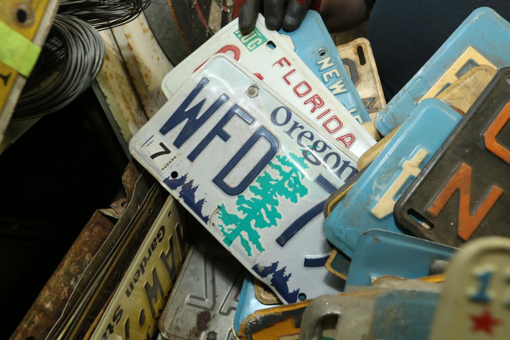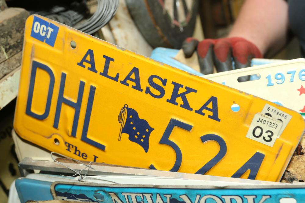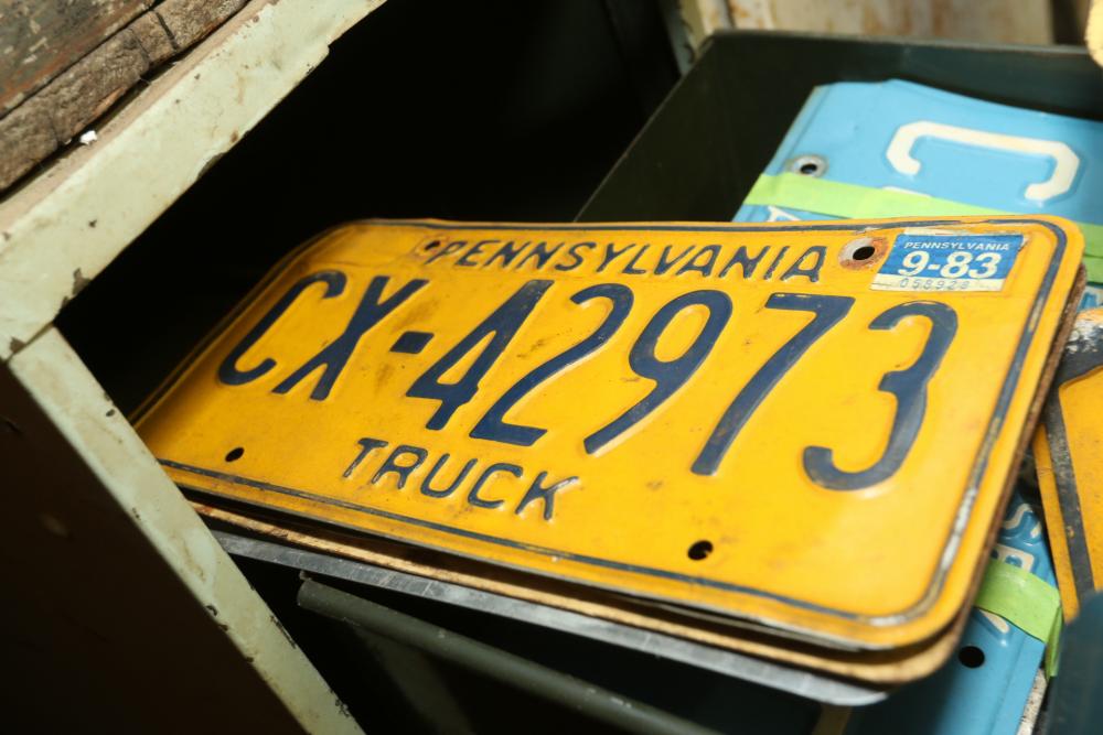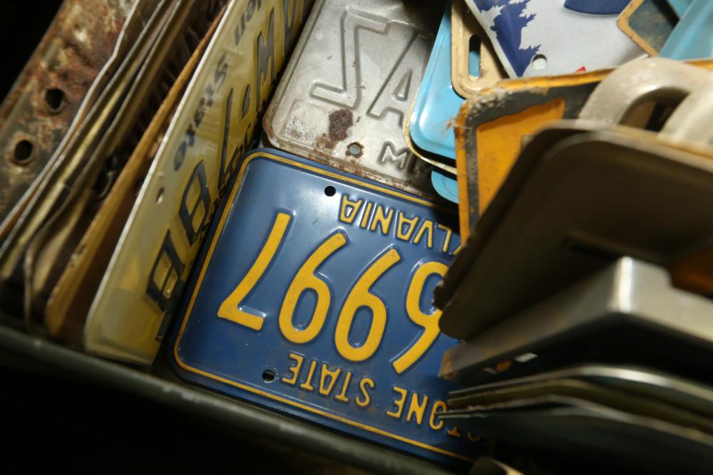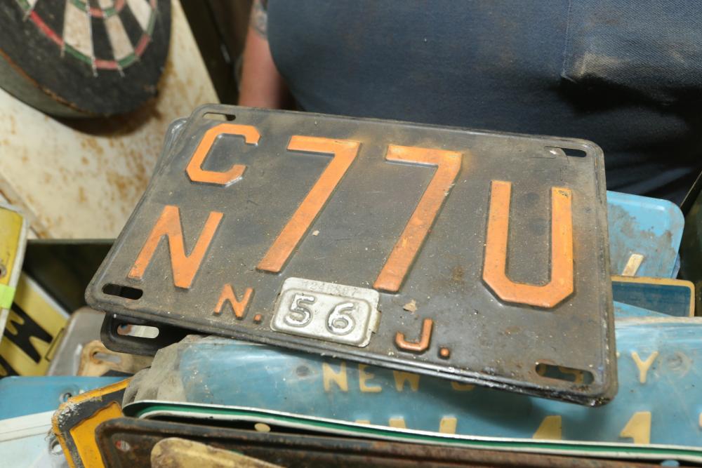Assortment of license plates states incl New Jersey, New York, Pennsylvania, Alaska, Florida, Oregon, etc.