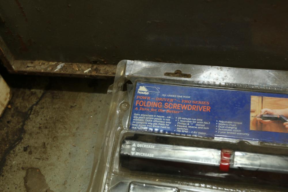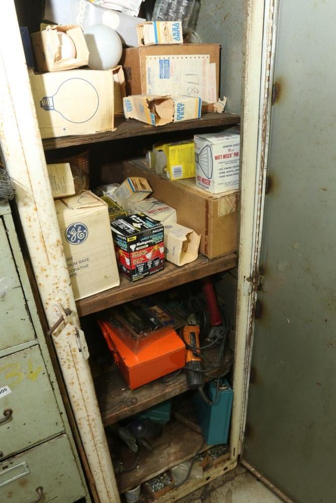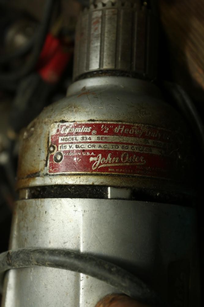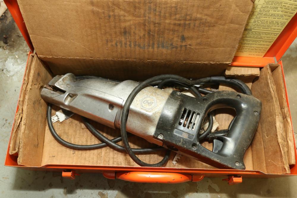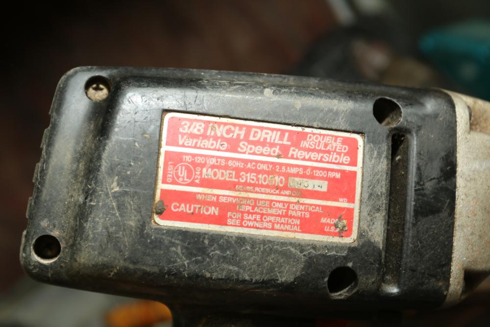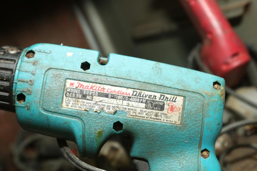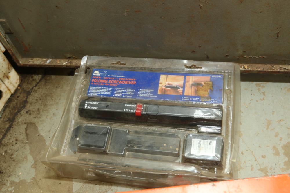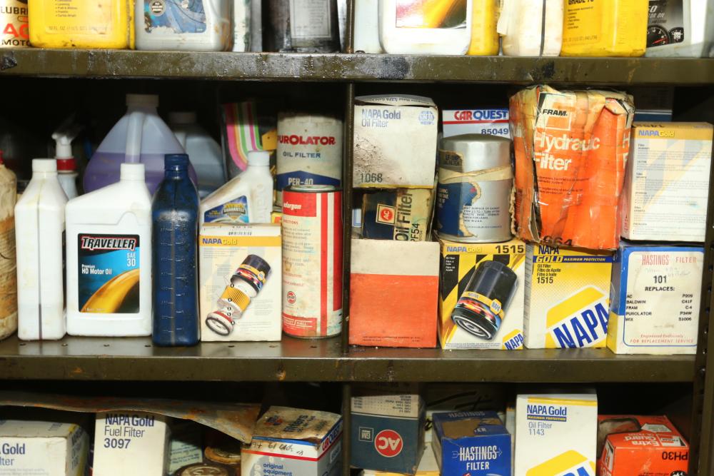 John Oster Cummins 1/2" heavy duty drill model 334, Craftsman 3/8" drill model 315.10510, Black & Decker cut-saw kit, Makita cordless driver drill model 60930, etc., also having assortment of engine oil, grease, additives, oil filters, automotive fluids, light bulbs, etc.