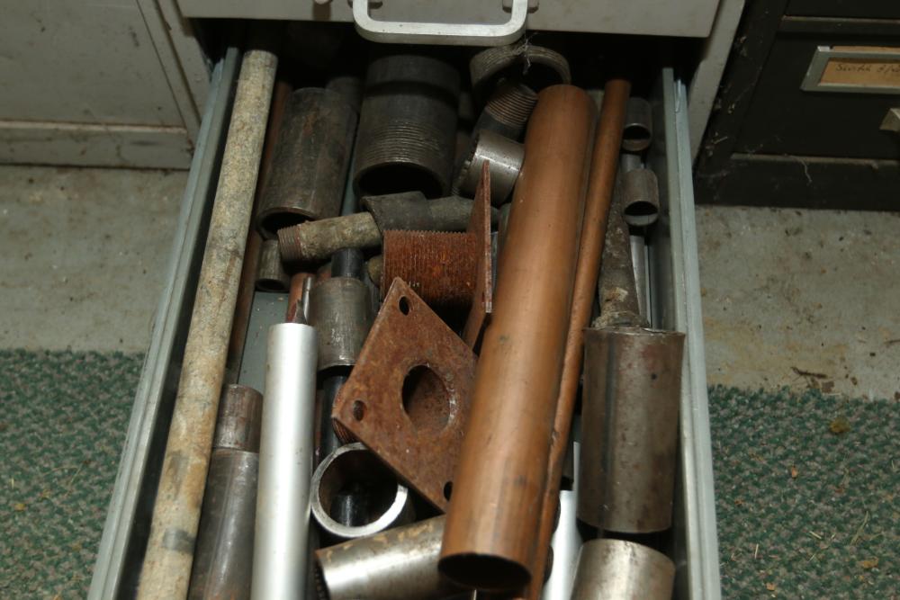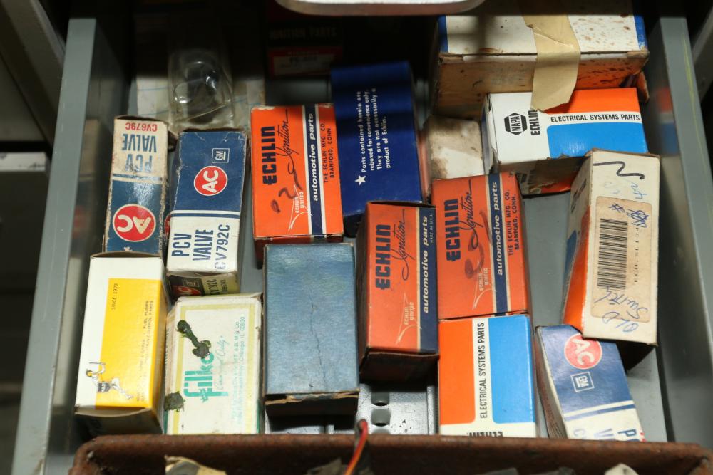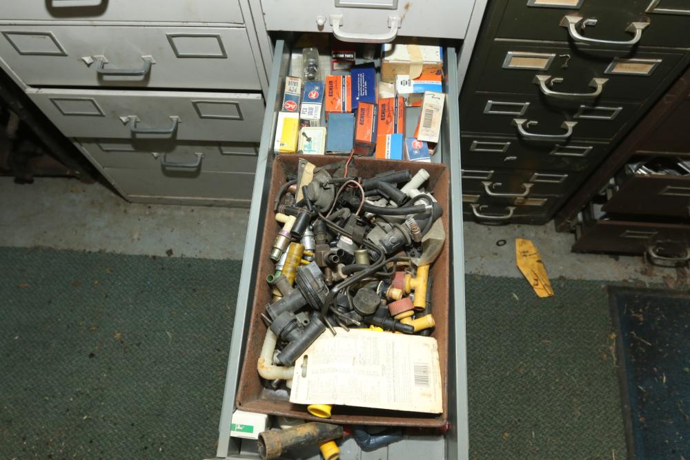 Items include automotive magazines & literature incl "Hot Rod" magazine, "Rod Action", "Truckin' ", etc.; Skat Blast sand blaster; license plates; exhaust piping/hoses/brackets, etc.; ball joint kits; camshafts/sockets/fittings; tap & dies; transmissions; manifolds; carburetors; headlights; fenders & doors; wheels; chrome bumpers; gas tanks; seats/seat frames; wheel covers; mufflers; brake drums; bolts of interior fabric; Kellogg-American air compressor; AC compressors; steering components; body panels; hoods; riding lawn mowers; axles; starters; walk behind push mowers and more. Items located in Ringoes, NJ.