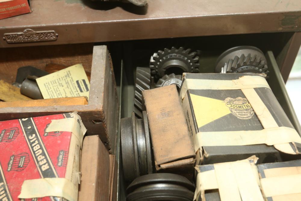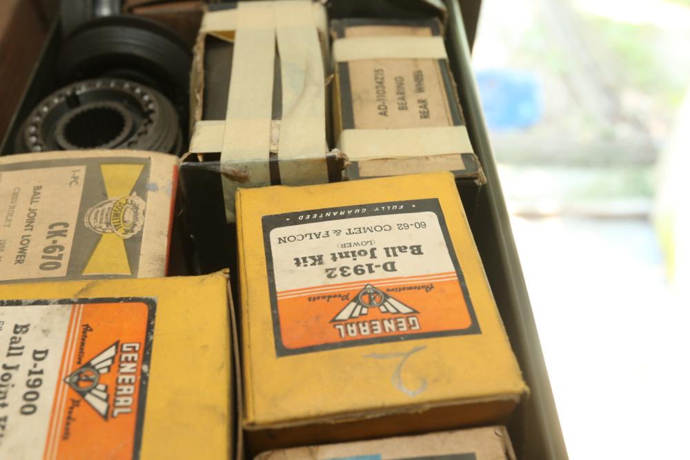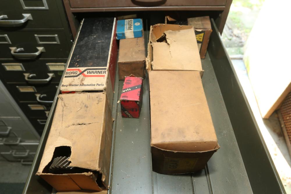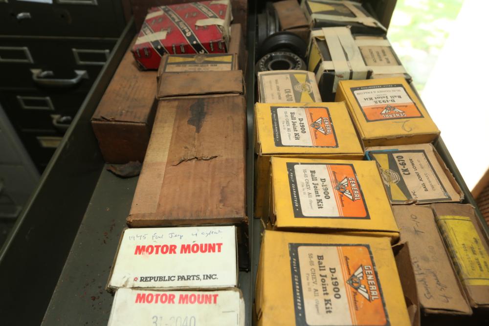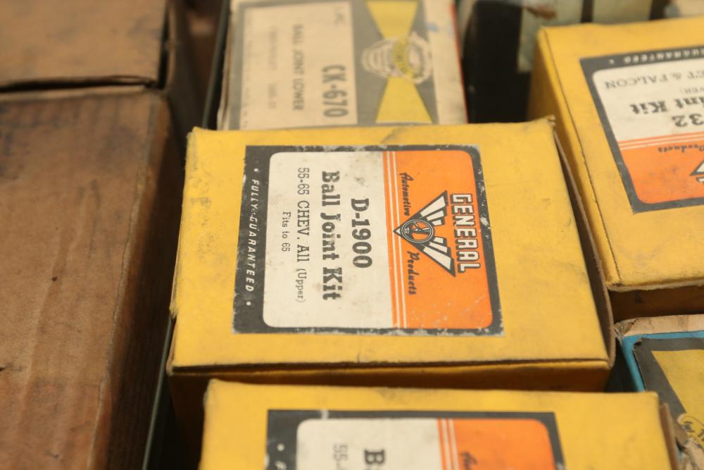 Items include automotive magazines & literature incl "Hot Rod" magazine, "Rod Action", "Truckin' ", etc.; Skat Blast sand blaster; license plates; exhaust piping/hoses/brackets, etc.; ball joint kits; camshafts/sockets/fittings; tap & dies; transmissions; manifolds; carburetors; headlights; fenders & doors; wheels; chrome bumpers; gas tanks; seats/seat frames; wheel covers; mufflers; brake drums; bolts of interior fabric; Kellogg-American air compressor; AC compressors; steering components; body panels; hoods; riding lawn mowers; axles; starters; walk behind push mowers and more. Items located in Ringoes, NJ.