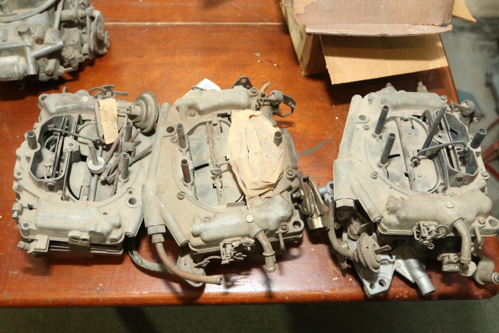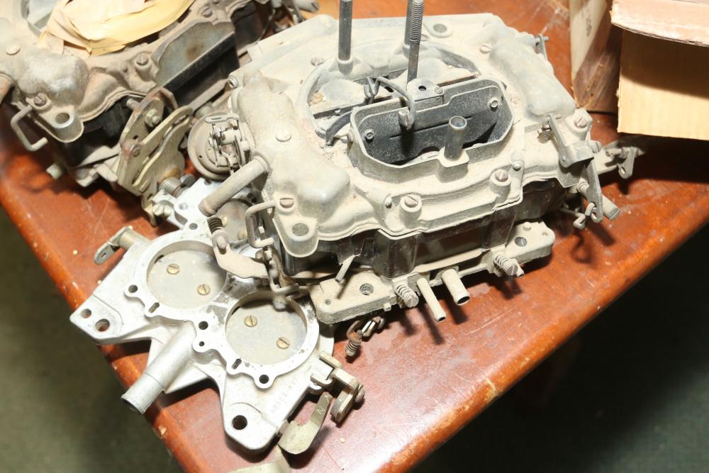 Items include automotive magazines & literature incl "Hot Rod" magazine, "Rod Action", "Truckin' ", etc.; Skat Blast sand blaster; license plates; exhaust piping/hoses/brackets, etc.; ball joint kits; camshafts/sockets/fittings; tap & dies; transmissions; manifolds; carburetors; headlights; fenders & doors; wheels; chrome bumpers; gas tanks; seats/seat frames; wheel covers; mufflers; brake drums; bolts of interior fabric; Kellogg-American air compressor; AC compressors; steering components; body panels; hoods; riding lawn mowers; axles; starters; walk behind push mowers and more. Items located in Ringoes, NJ.