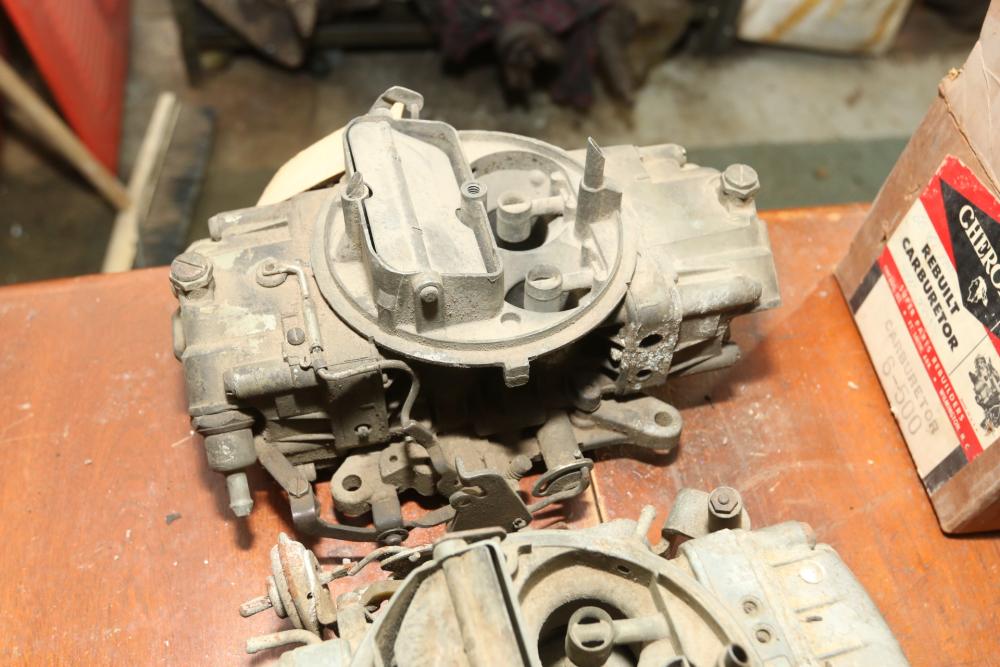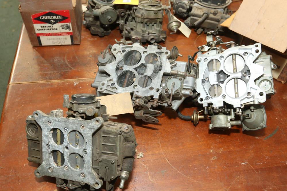 Items include automotive magazines & literature incl "Hot Rod" magazine, "Rod Action", "Truckin' ", etc.; Skat Blast sand blaster; license plates; exhaust piping/hoses/brackets, etc.; ball joint kits; camshafts/sockets/fittings; tap & dies; transmissions; manifolds; carburetors; headlights; fenders & doors; wheels; chrome bumpers; gas tanks; seats/seat frames; wheel covers; mufflers; brake drums; bolts of interior fabric; Kellogg-American air compressor; AC compressors; steering components; body panels; hoods; riding lawn mowers; axles; starters; walk behind push mowers and more. Items located in Ringoes, NJ.